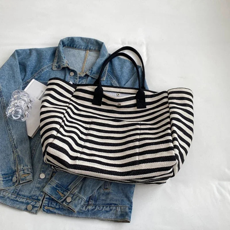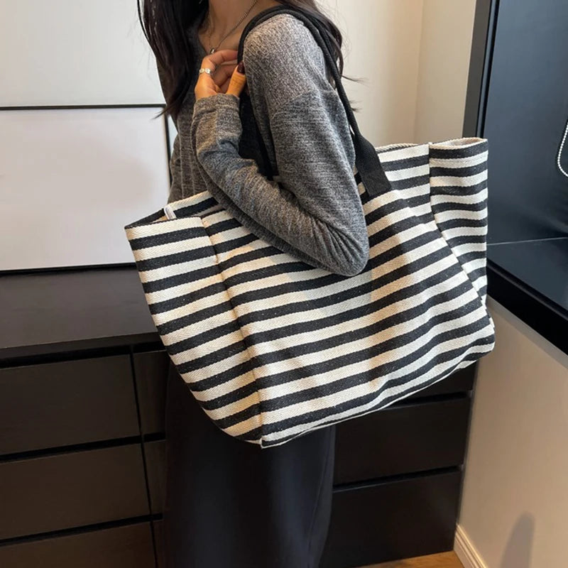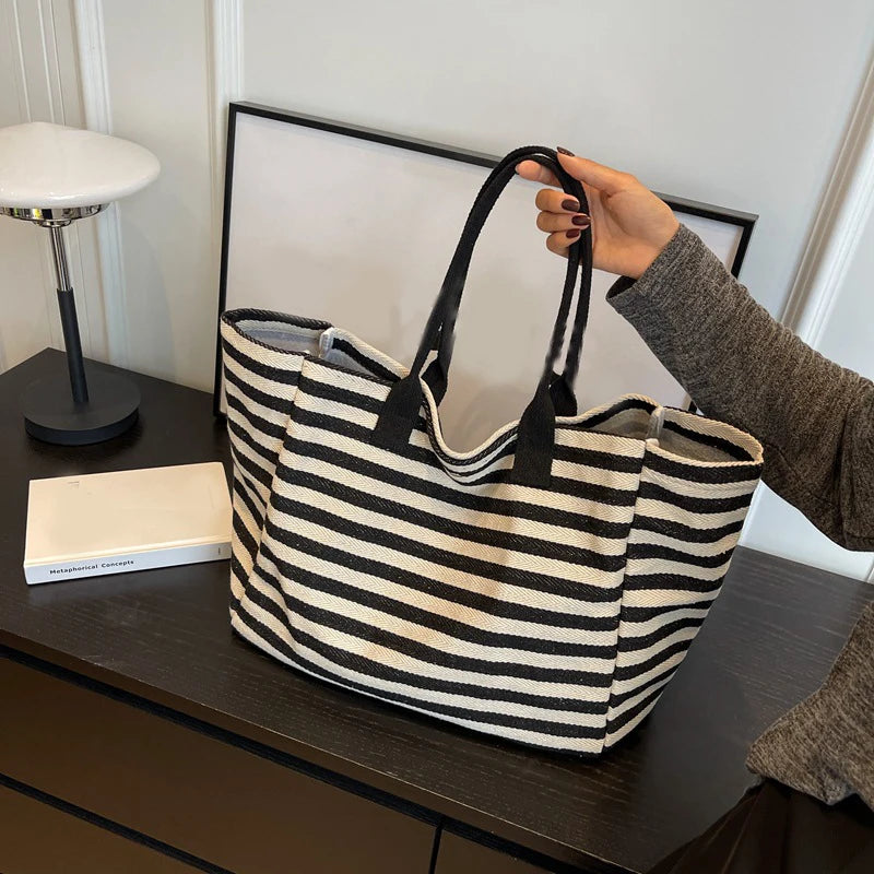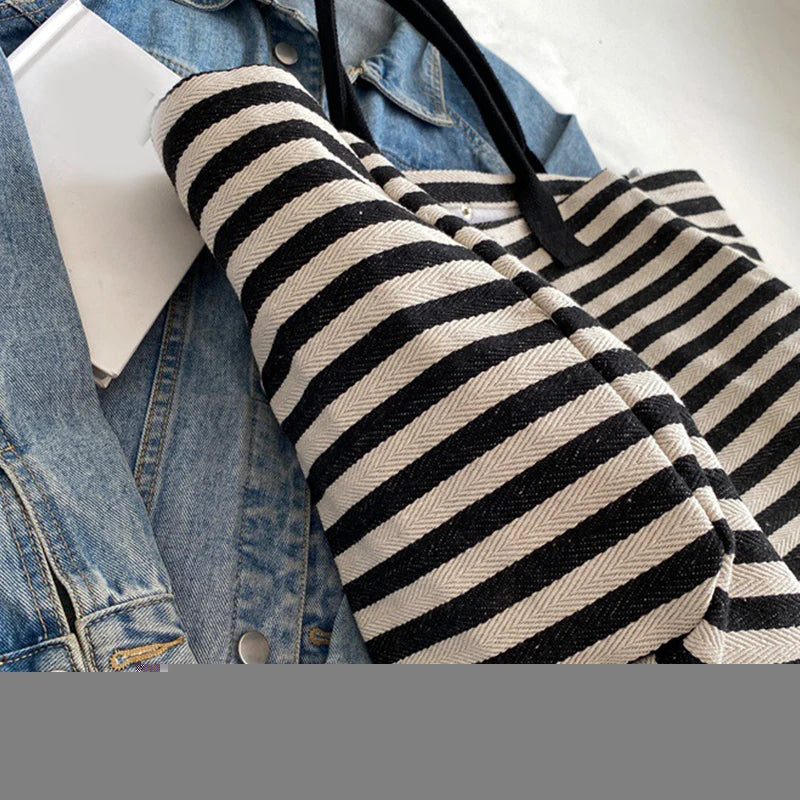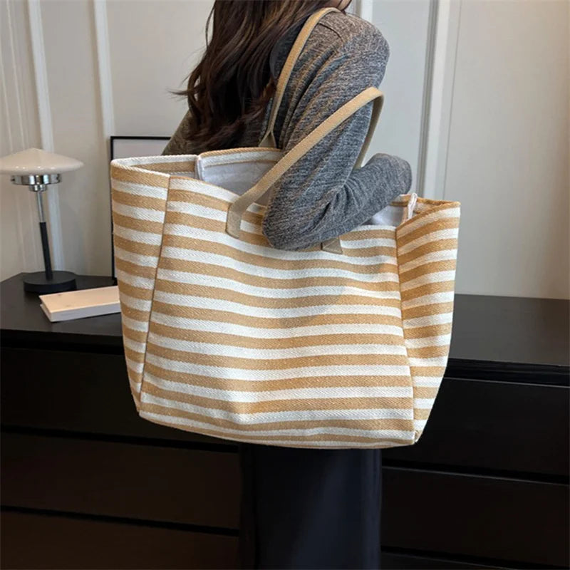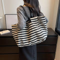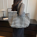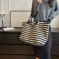 Casual Striped Canvas Bag For Women | Large Capacity Shoulder Bag