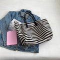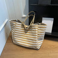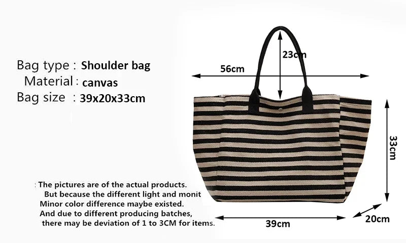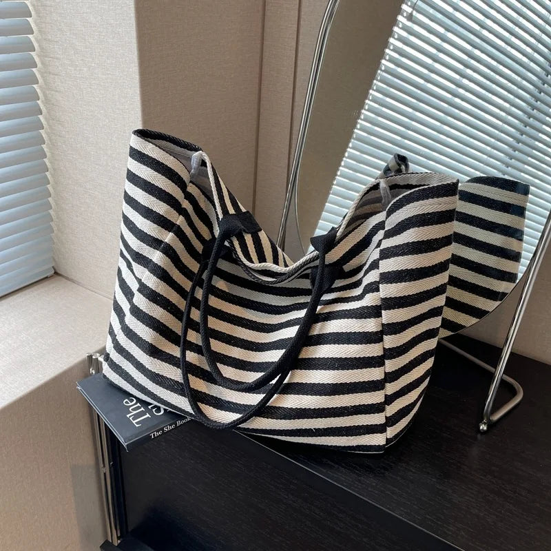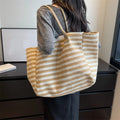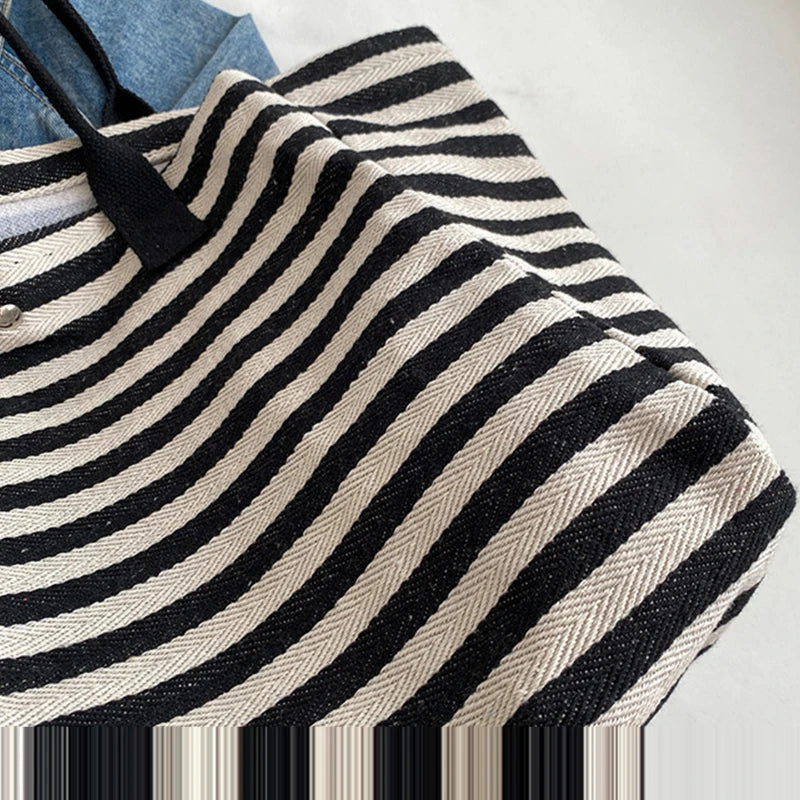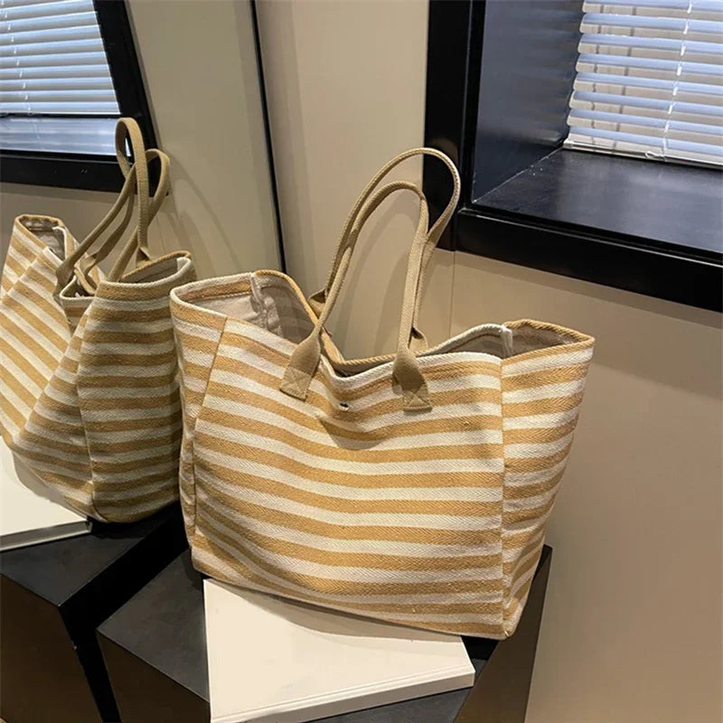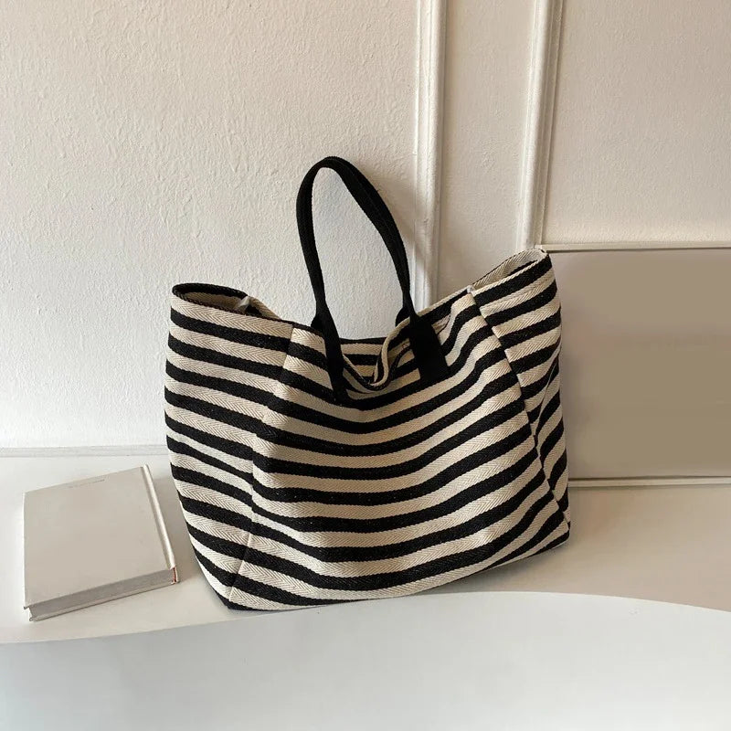 Casual Striped Canvas Bag For Women | Large Capacity Shoulder Bag