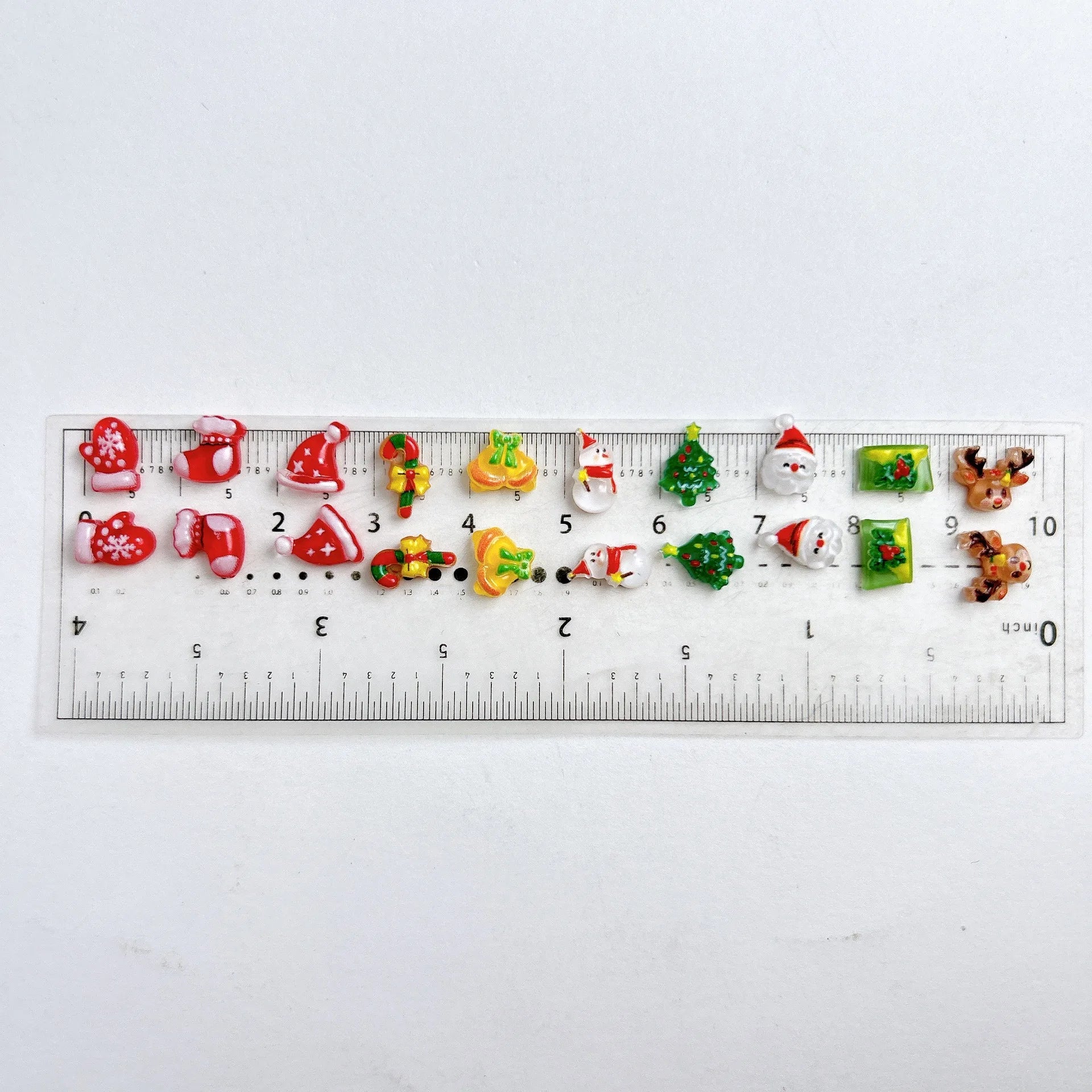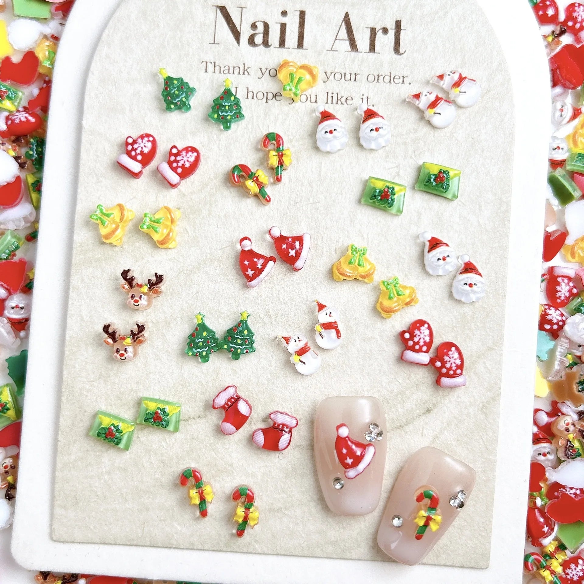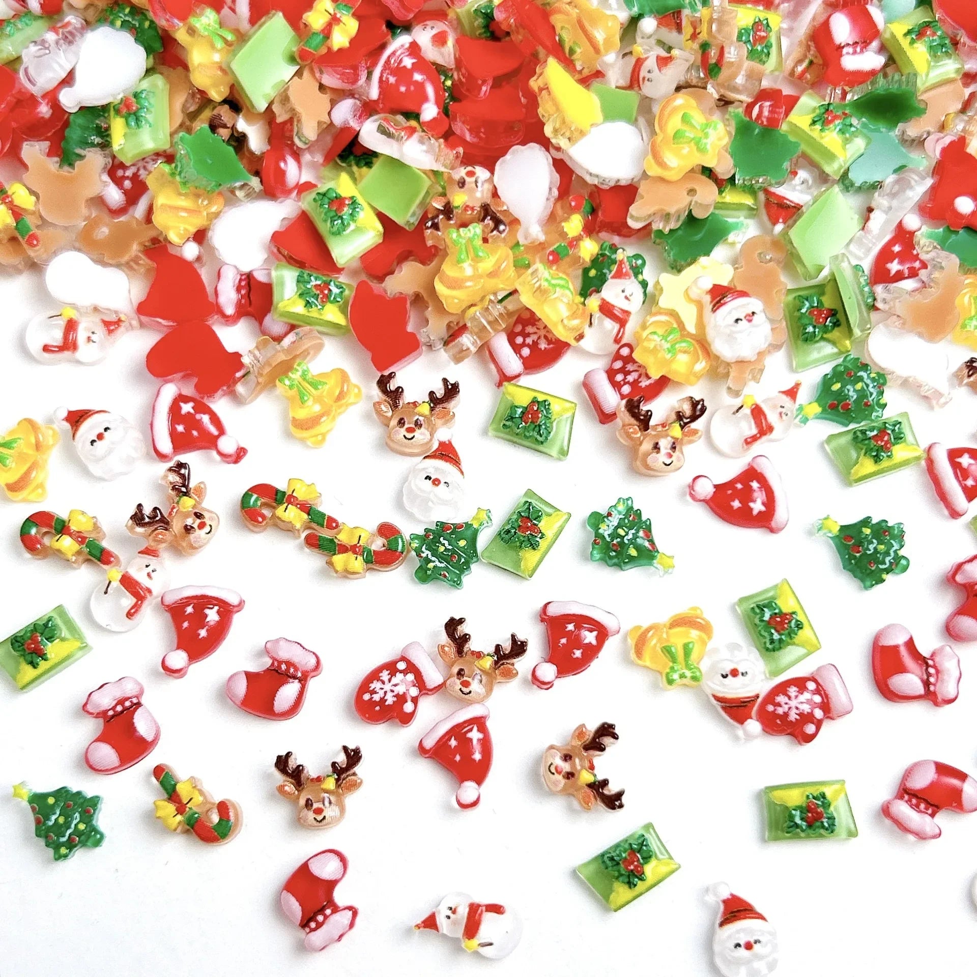 20 Cartoon Christmas nails | Charms Mini Creative Gloves Santa Claus Snowman Resin Nail Art
