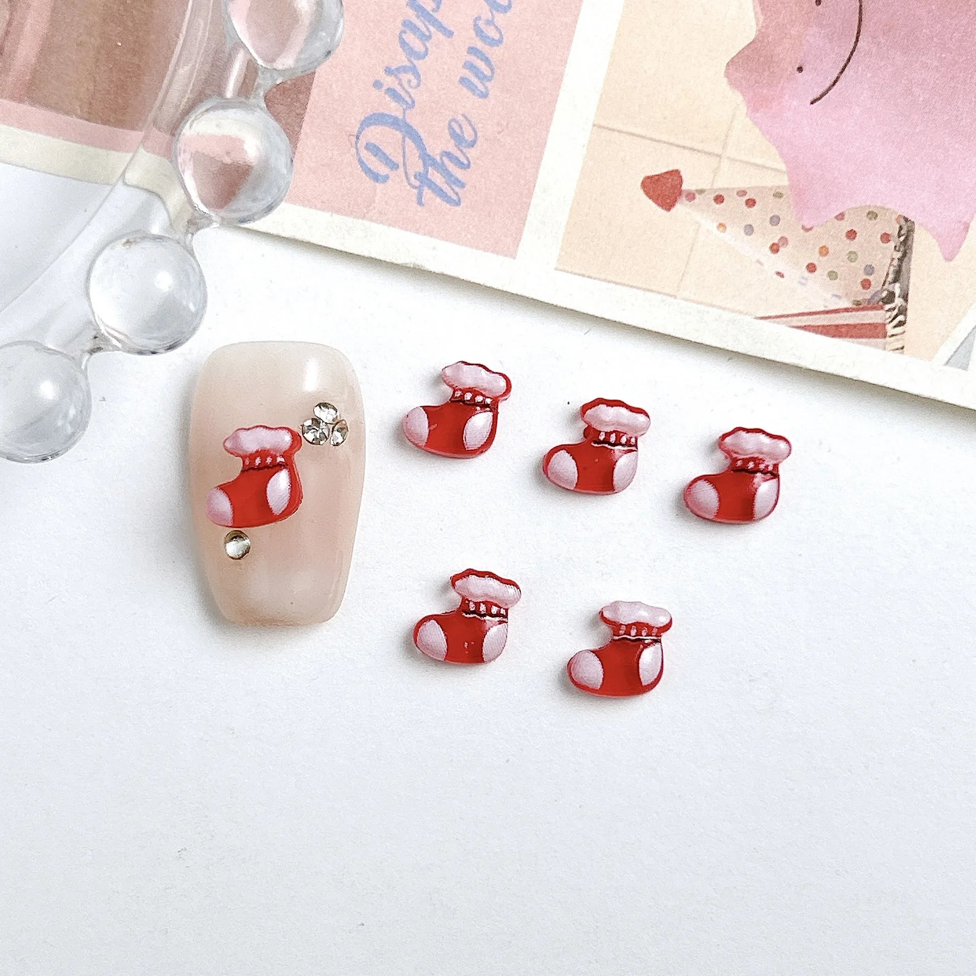 20Pc Cartoon Christmas Cake Nail Charms Mini Creative Gloves Santa Claus Snowman Resin Nail Art Decorations DIY Kawaii Accessory