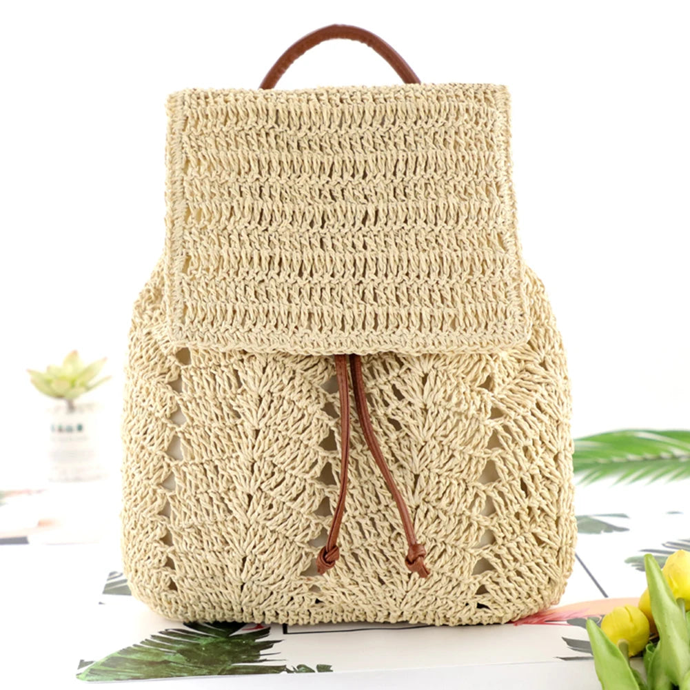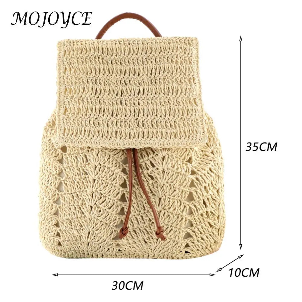 Women Straw Backpack Shoulders Bag Handmade Woven Casual Beach Holiday Vacation Bagpacks Top Handle Bucket Bags