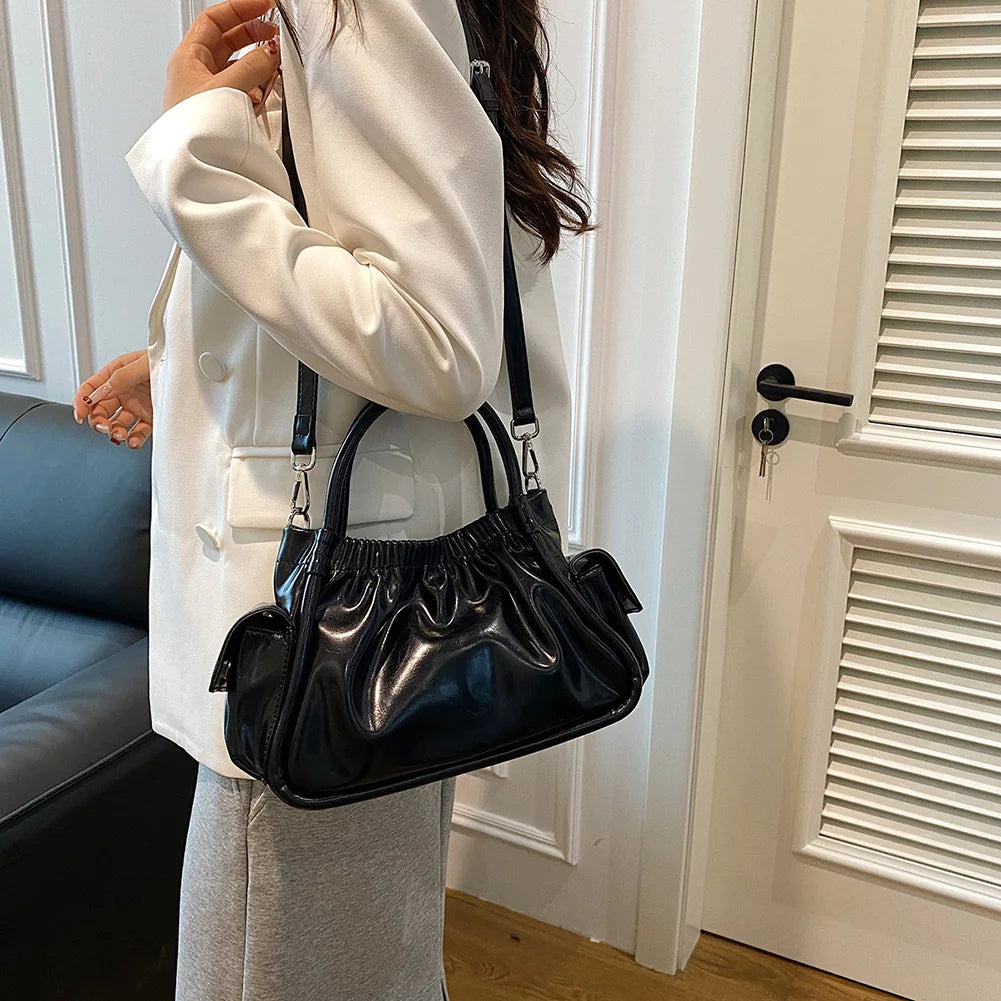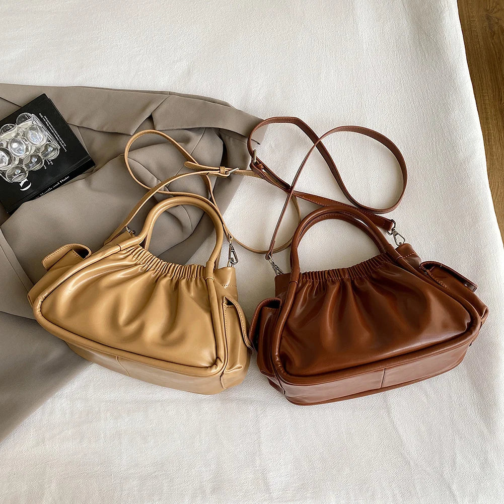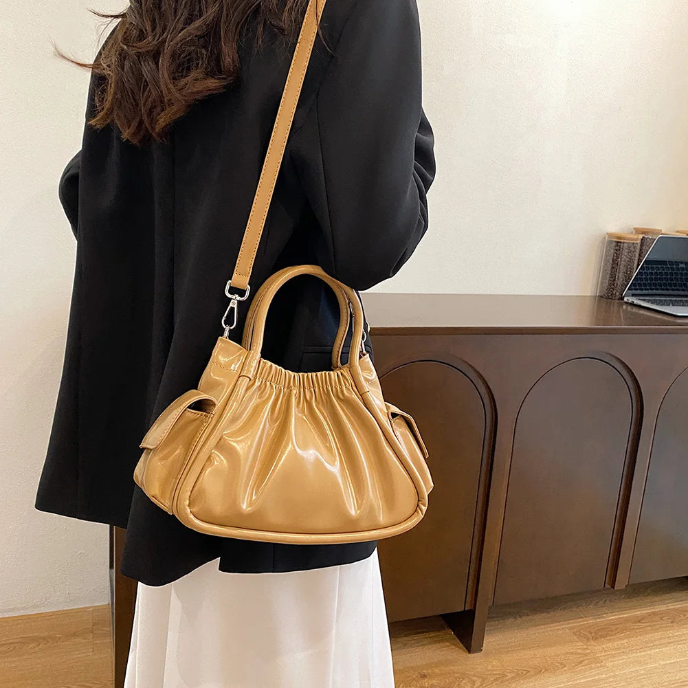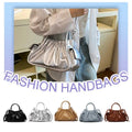 Women PU Casual Top Handle Bag Solid Color Stylish Shoulder Purse Adjustable Strap Small Ruched Tote Bag Trendy Commuting Bag Features: 1. Premium Material: Crafted from high-quality PU fabric, this pleated shoulder bag is not only soft and comfortable but also and easy to maintain. Its luxurious texture adds a touch of sophistication to your everyday style, ensuring long-lasting use. Specification: Origin: Mainland China Shape: Hobos Main Material: PU Lining Material: Polyester Size: 250.00x100.00x170.00mm/9.84x3.94x6.69inch Usage: Handheld, Single Shoulder, Crossbody Note:
