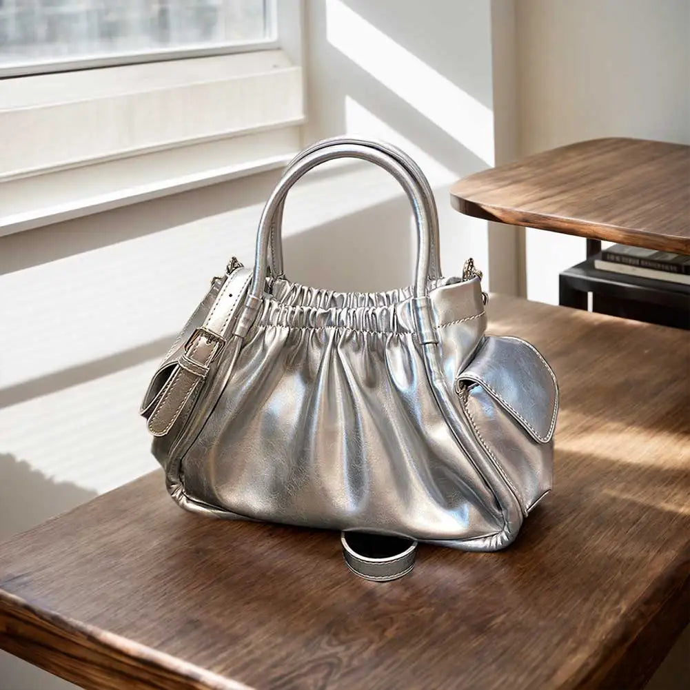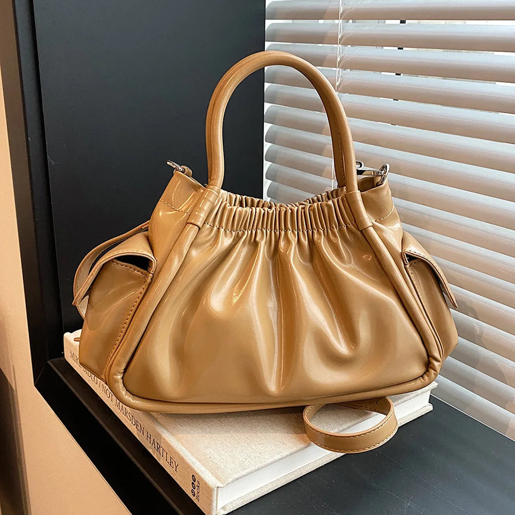 Women Casual Tote Bags | Handbag Adjustable Strap Small Ruched Tote Bag