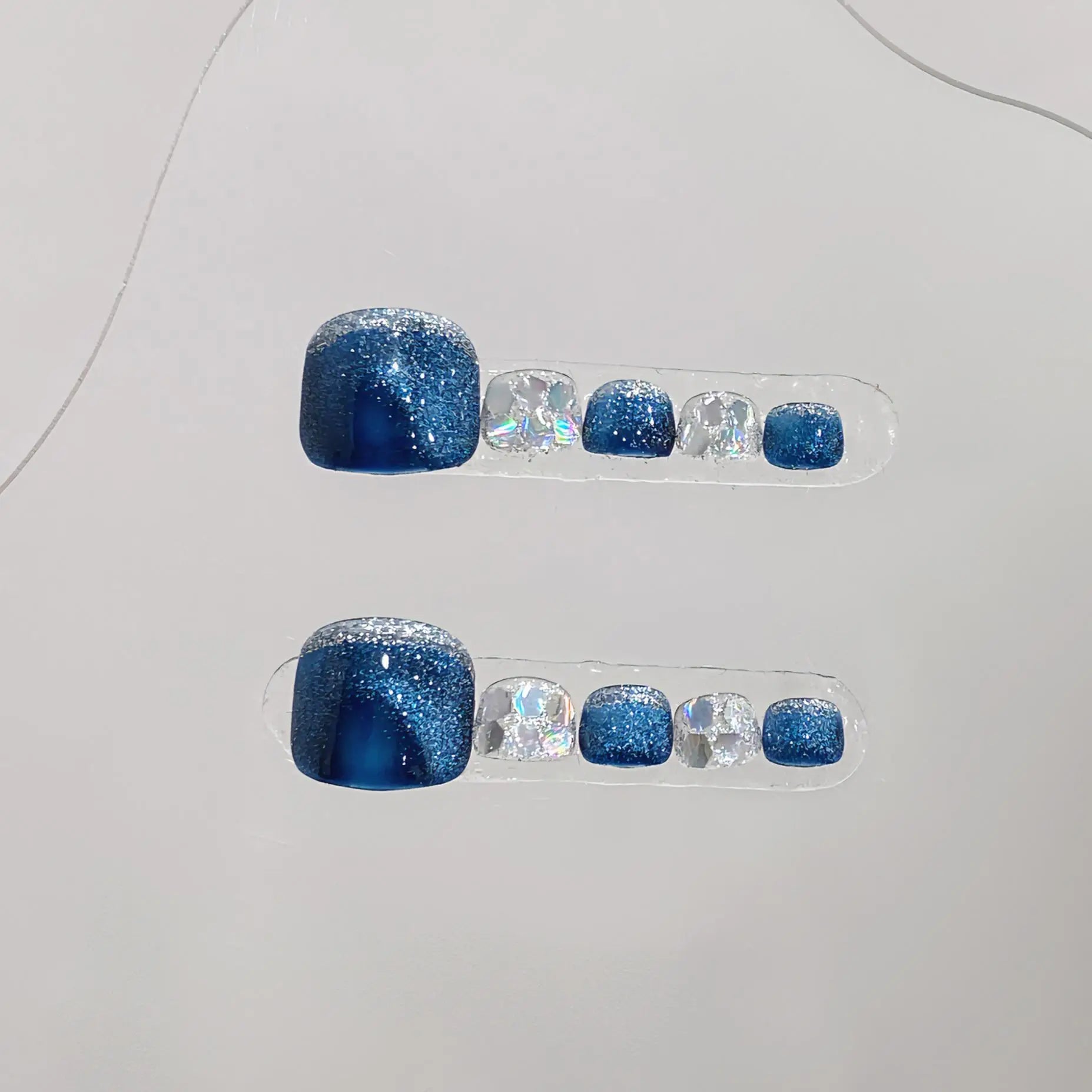 10pcs Handmade Blue Gradientcat eye feet nails | Press On Toe Nails | Y2K Nails Short Square