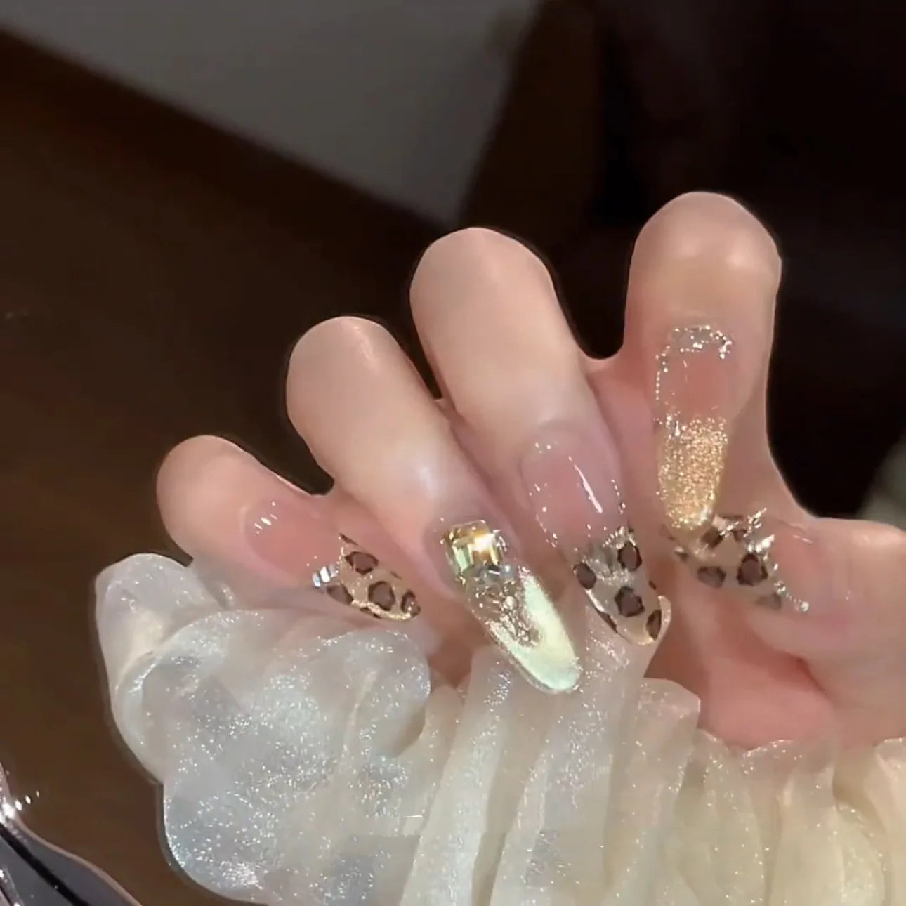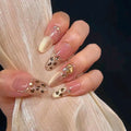 10pcs Handmade Press on Nails Long Oval French Leopard cat eye nail designs for Women&Girl