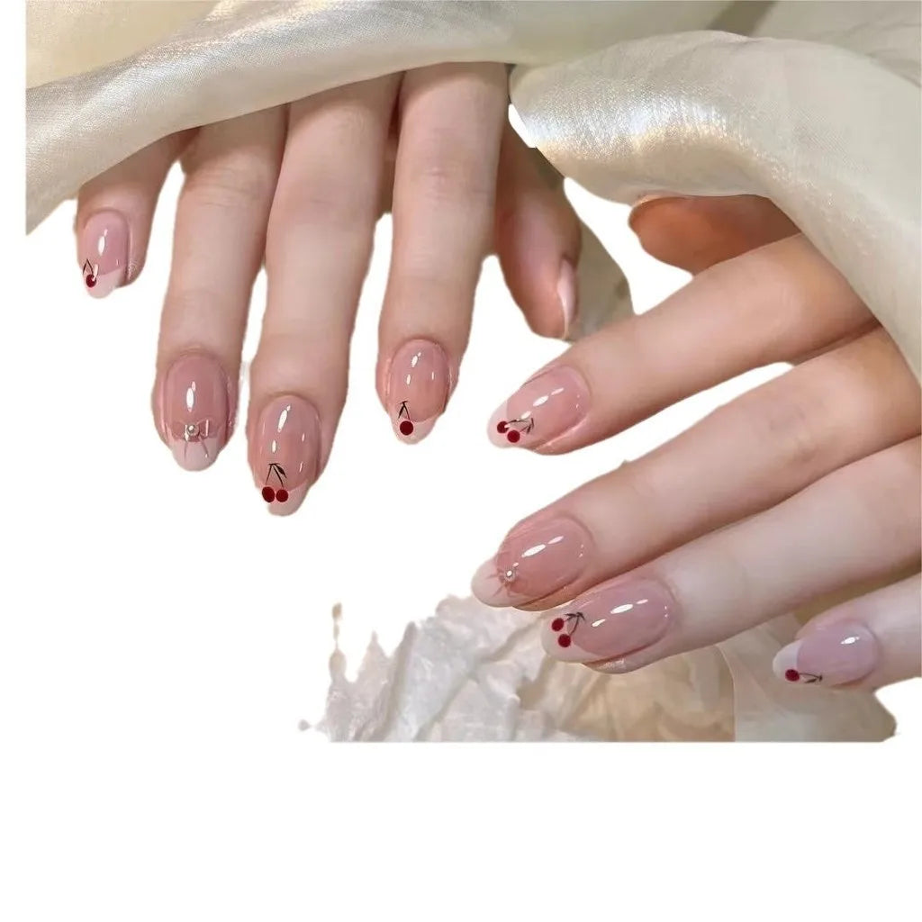 1  Unit Cherry French Nails | Cherry Custard French Handmade Wearing Nails