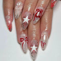 24pcs Sweet Letter Press On Cute Cherry Nails for womens
