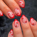 24 Cherry Red Nails Design set 1pc Nail File & 1Nail Glue Sticker Kit Nails