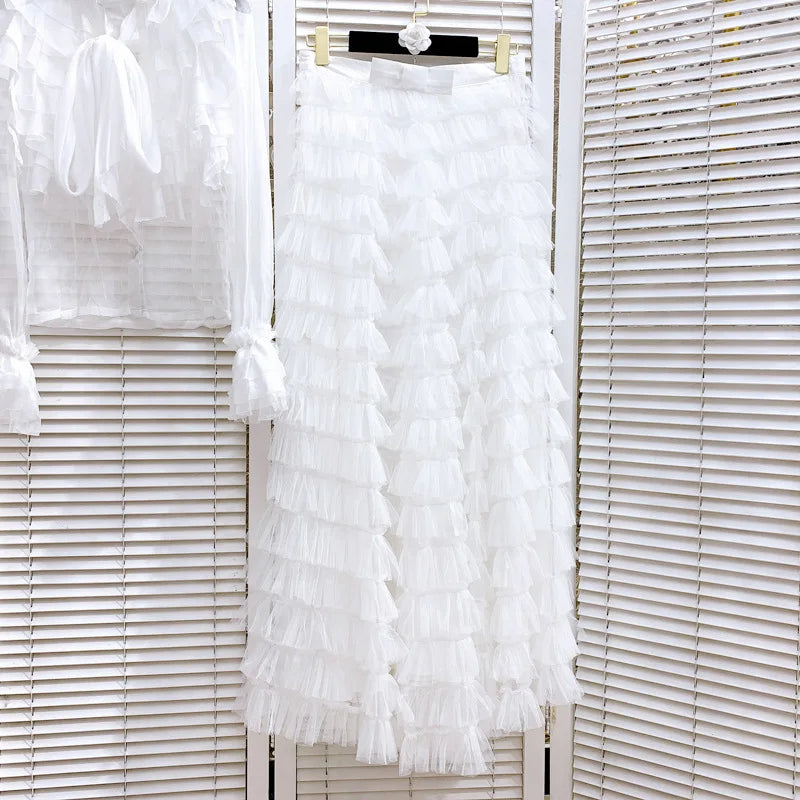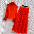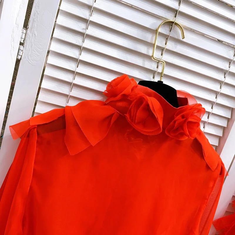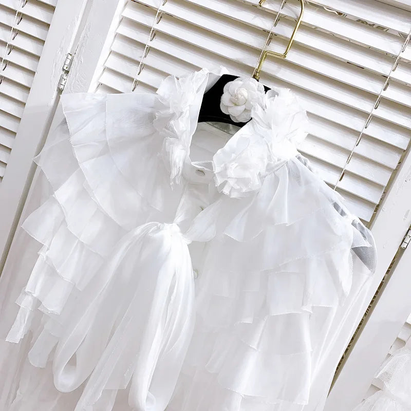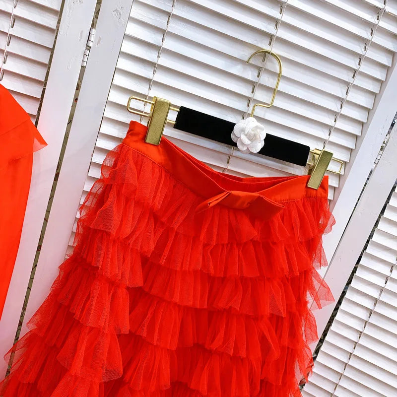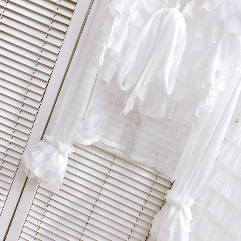 Chiffon Shirts | French Elegant Commuter Lace-up Bow Flared Sleeve Chiffon Shirts High Waist | Long Skirt Two-piece Set Women