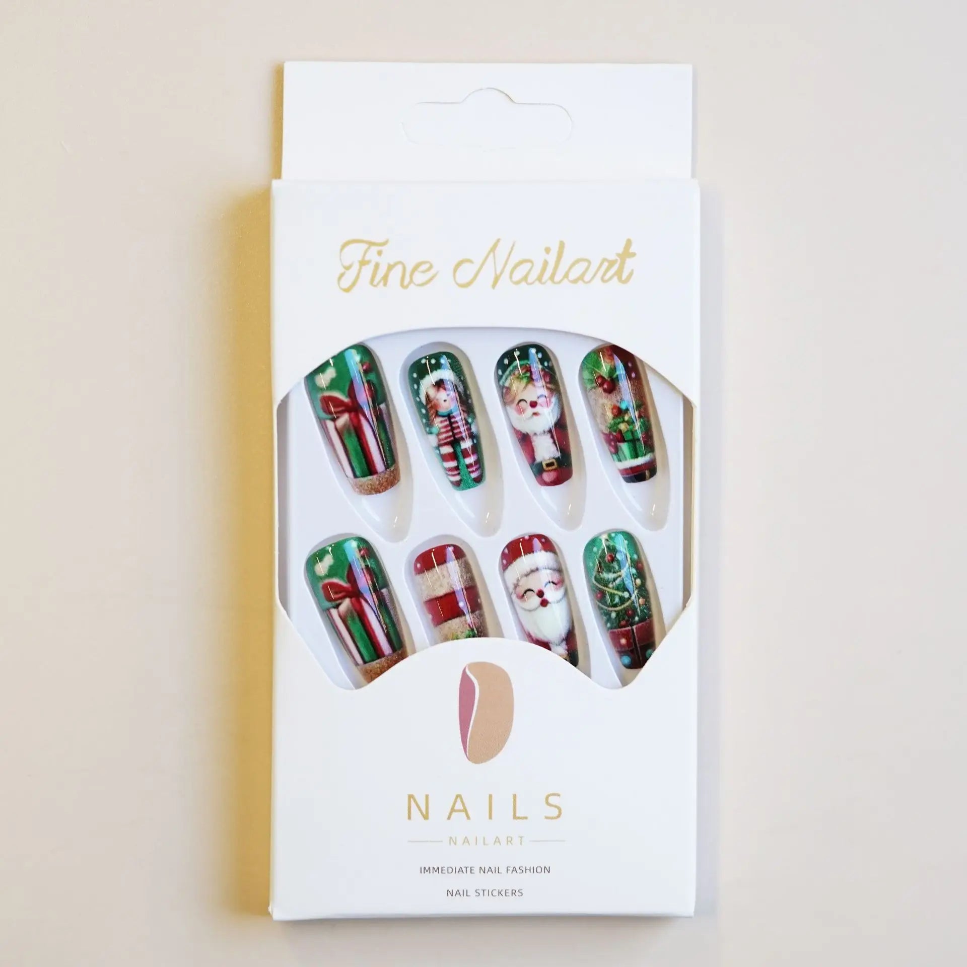 24 Christmas Gift Nails | Winter Santa Claus Penguin Pattern False Nails Tips