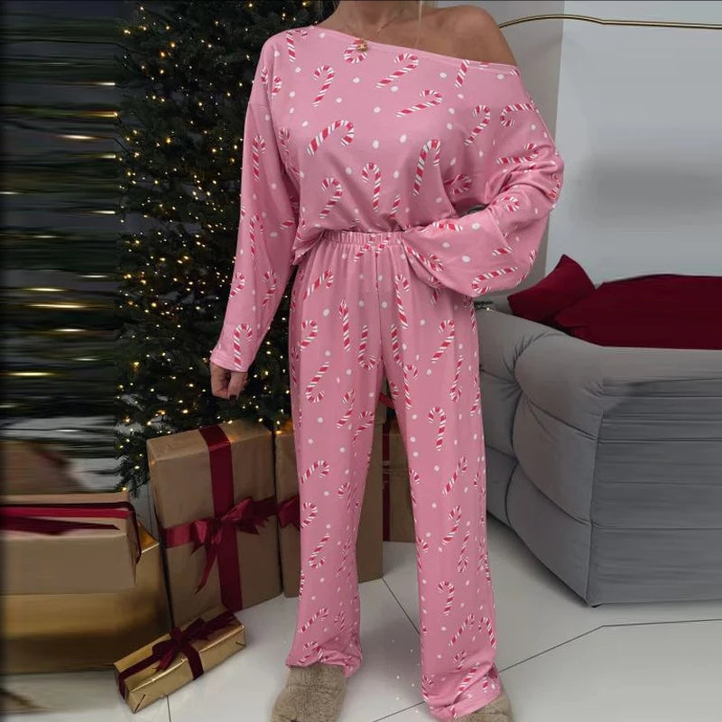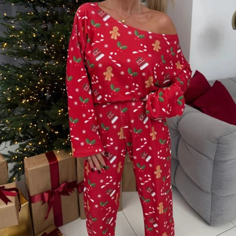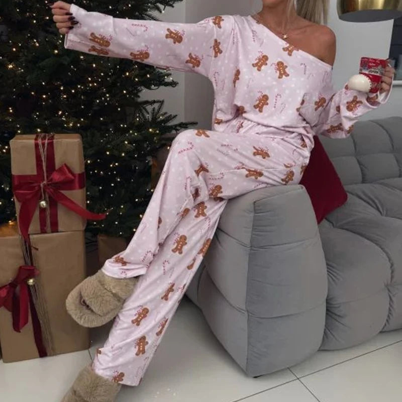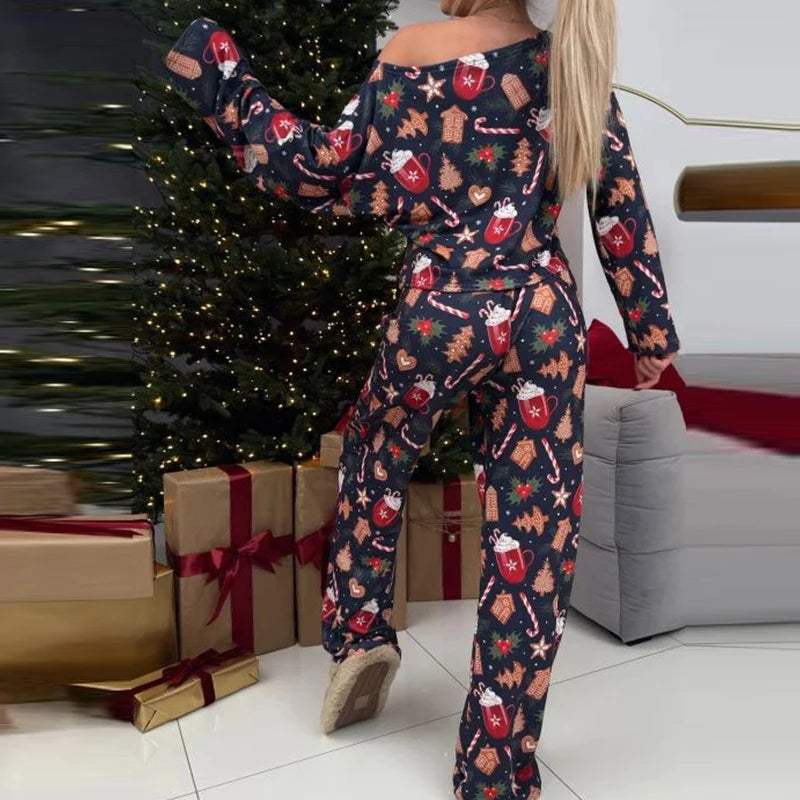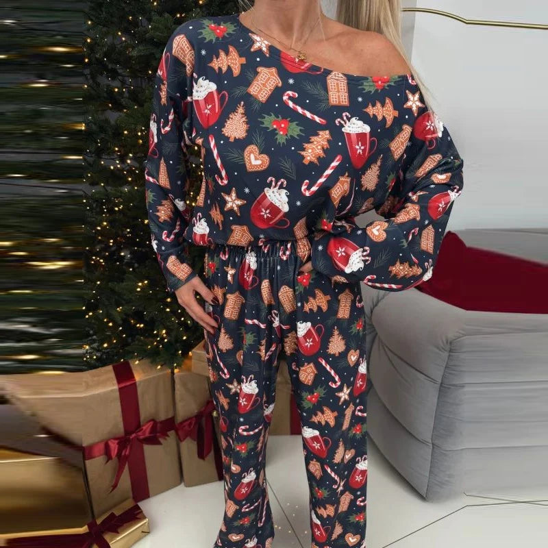 Christmas Homeware | Women Casual Loose Outfits | Christmas Pattern Print 2Pc Suits