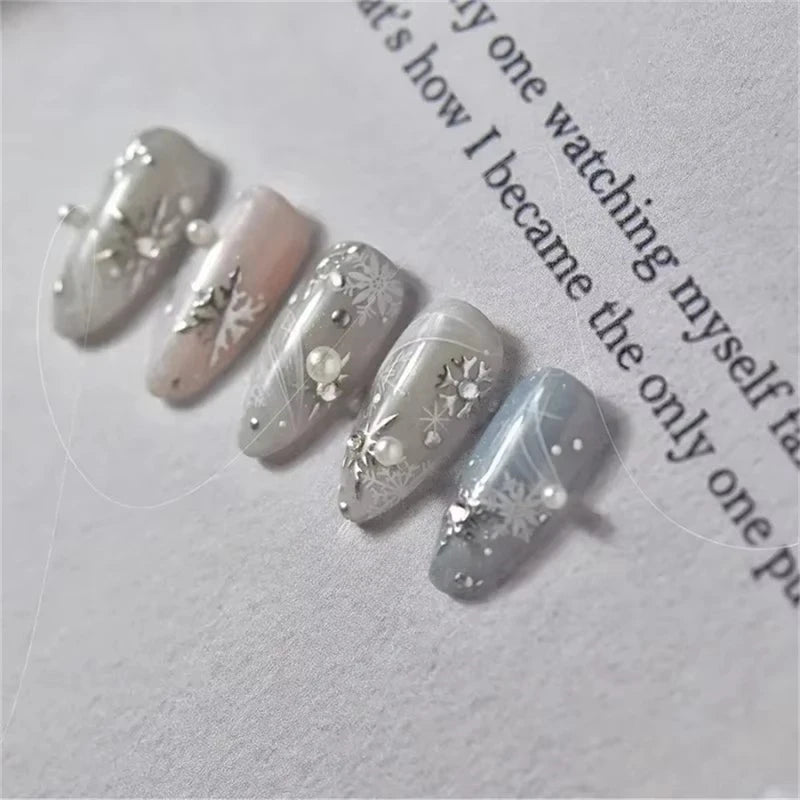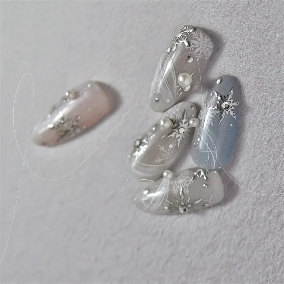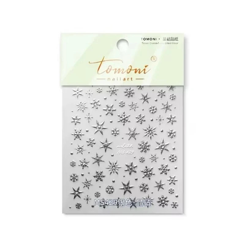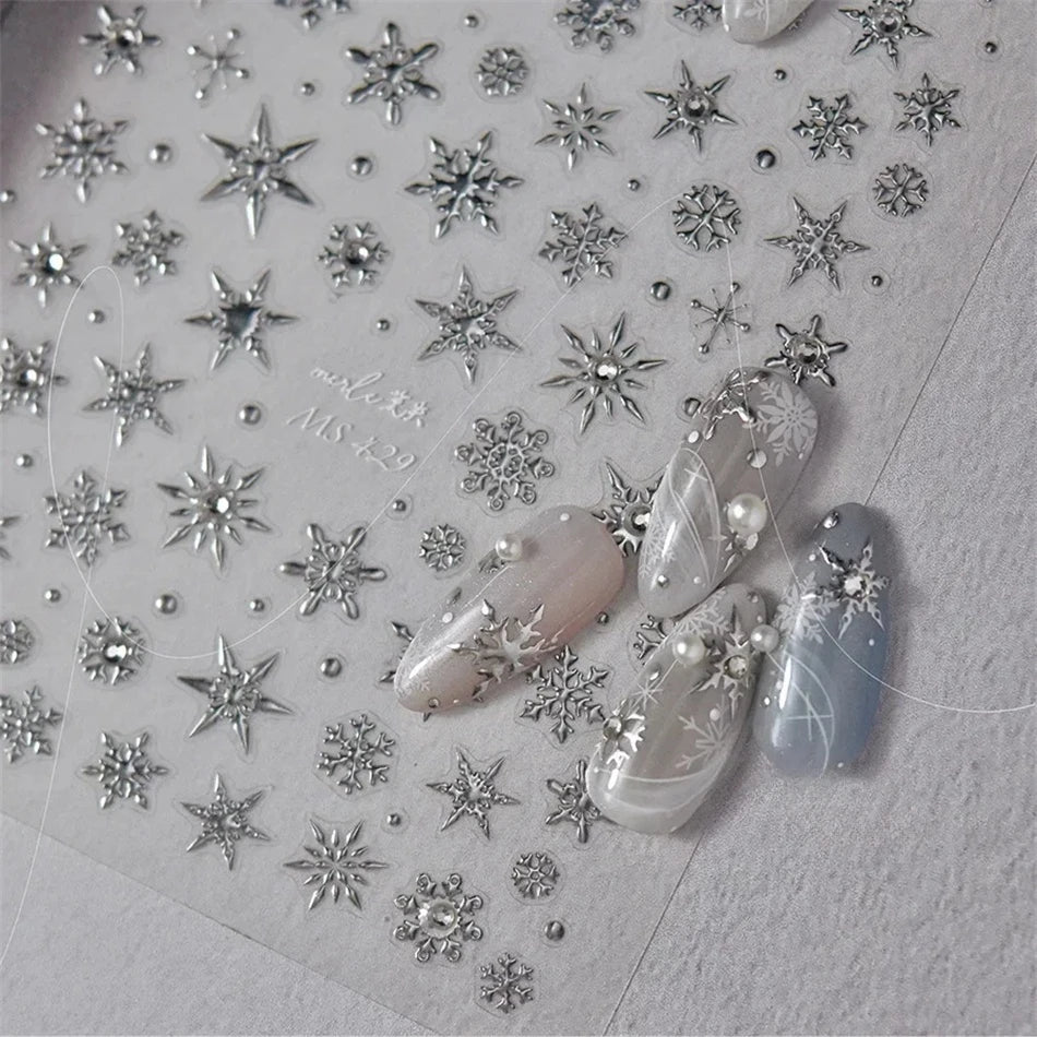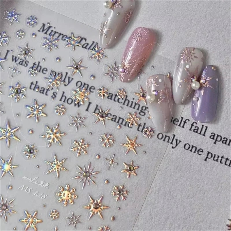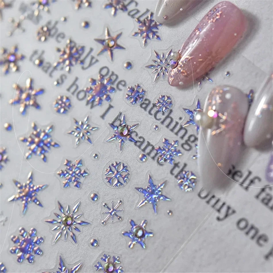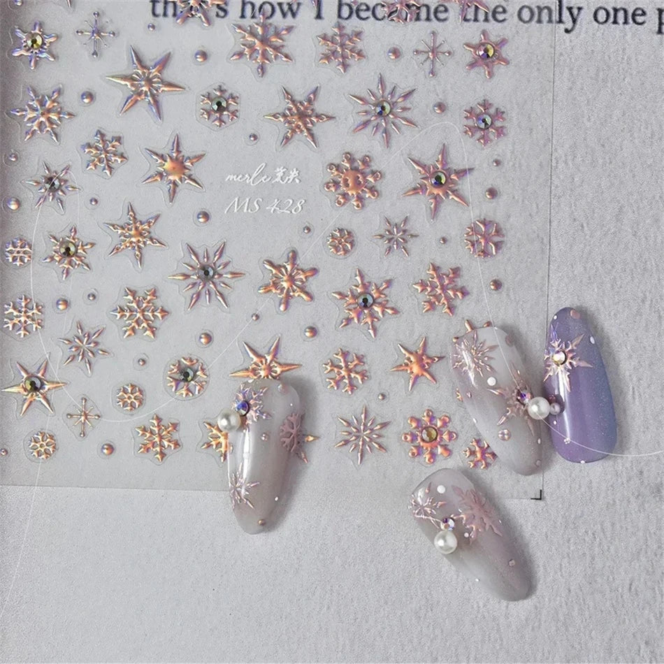 5D Laser Winter Snowflake Christmas Shiny Rhinestone Embossed Relief Self Adhesive Nail Art Decoration Sticker Manicure Decals