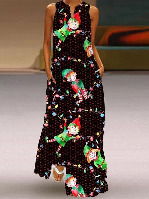 Christmas Maxi Dress | Christmas Dress For Womens | Element Pattern Print Maxi Dress