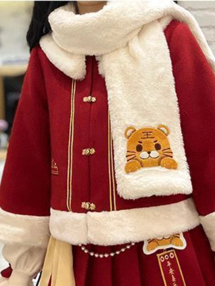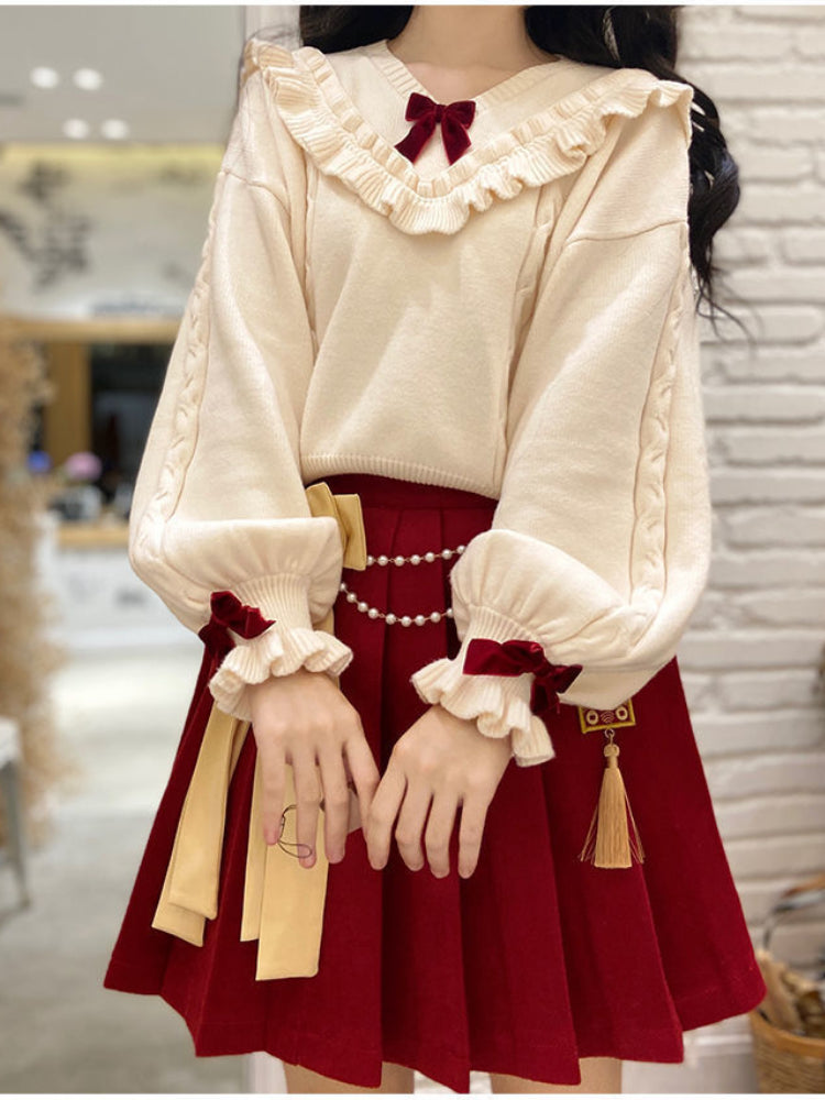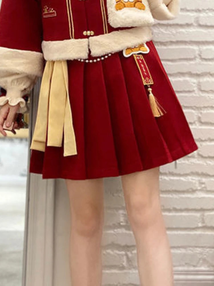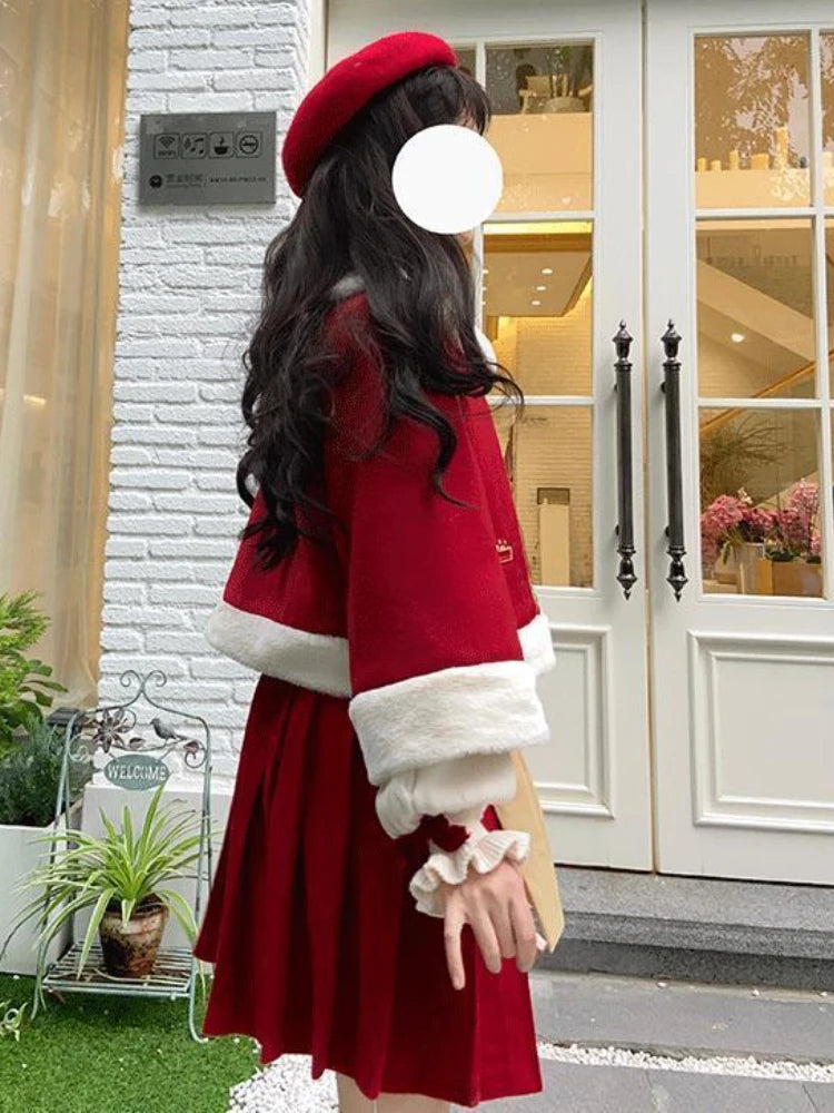 3 Christmas Mini Skirt Set |Winter Warm Bow Kawaii Lolita Mini Skirt Set | Festival Outfit