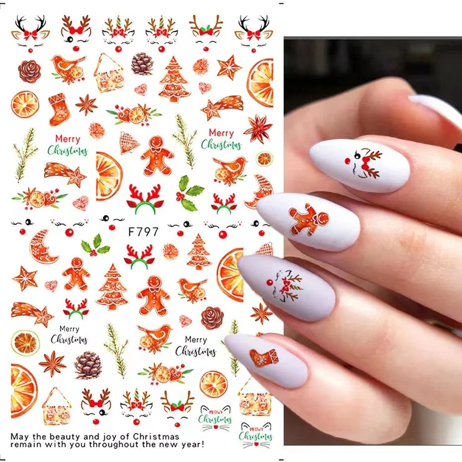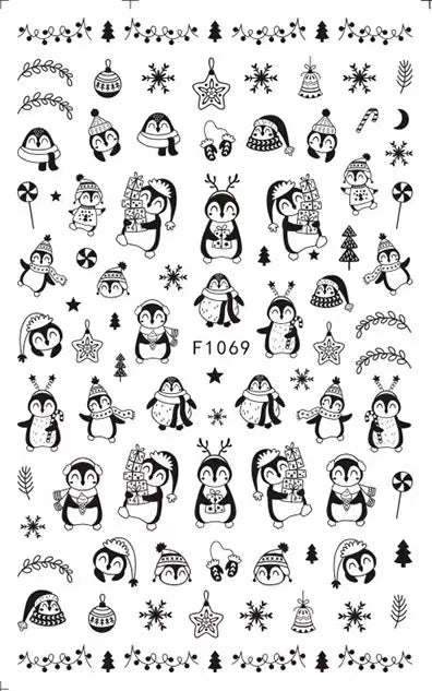 Feature of product: Cartoon Christmas Nail Stickers,Cute Santa Claus Christmas Stickers,Winter Penguin Stickers For Nails,Press On Nails