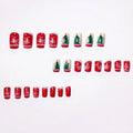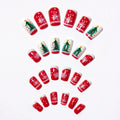 Medium long fake nails for Chirstmas party Square almond tips christmas tree snowflake gift snowman press on false nail art set