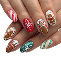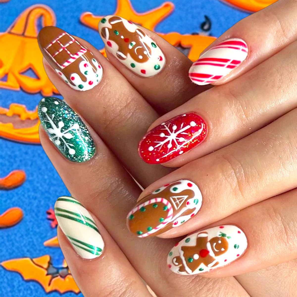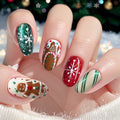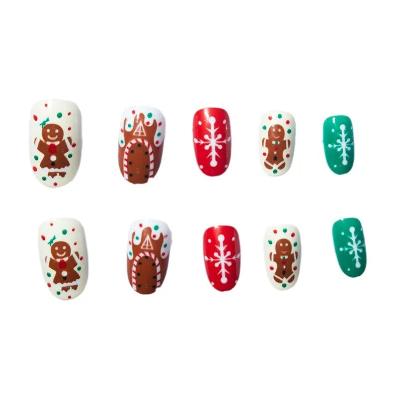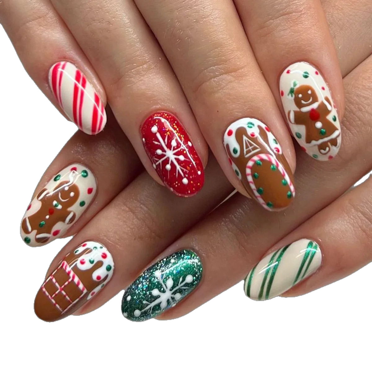 24 Christmas Nails Almond Press On Nails | Christmas Party Cute Gingerbread Fake Nail