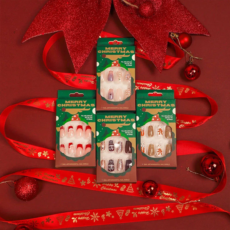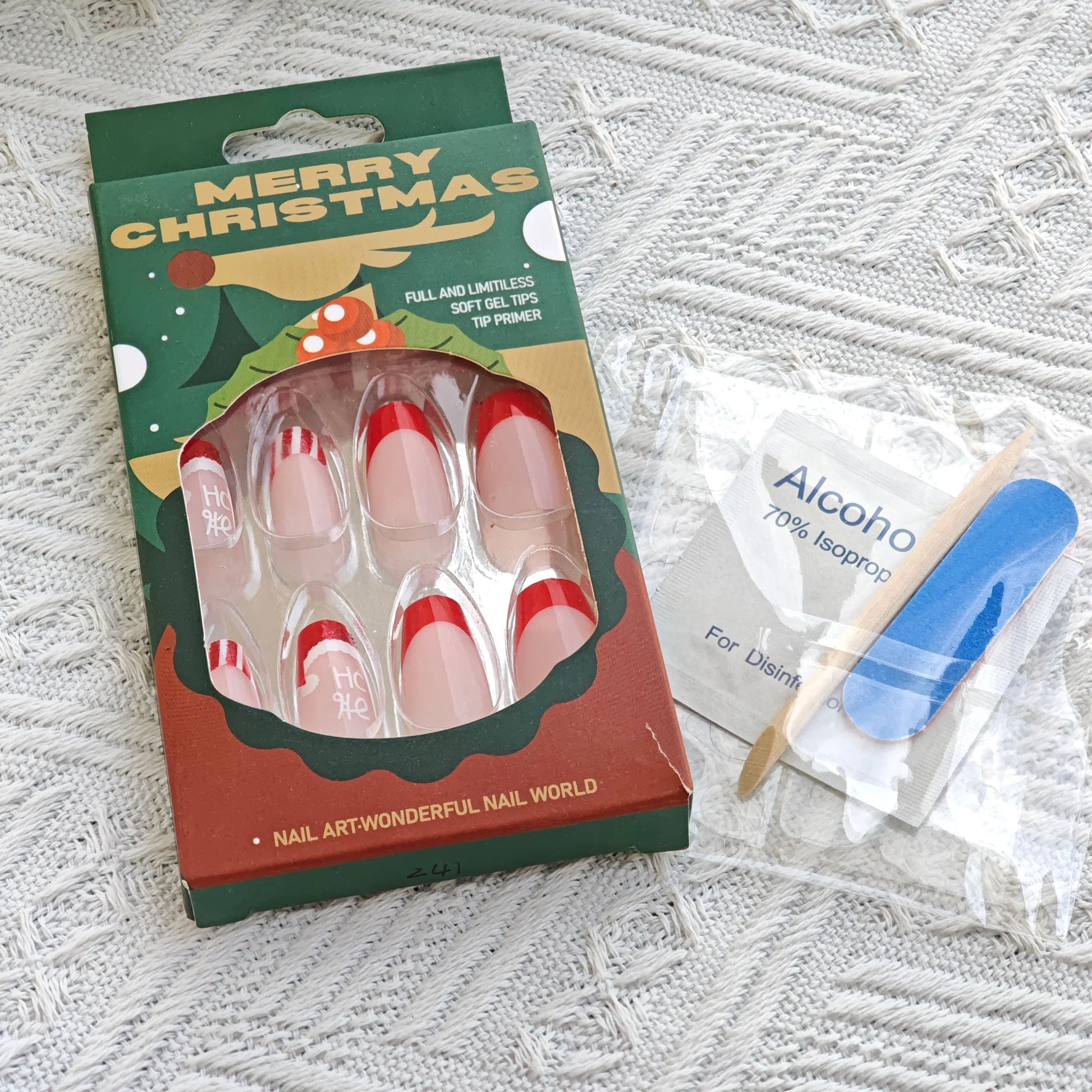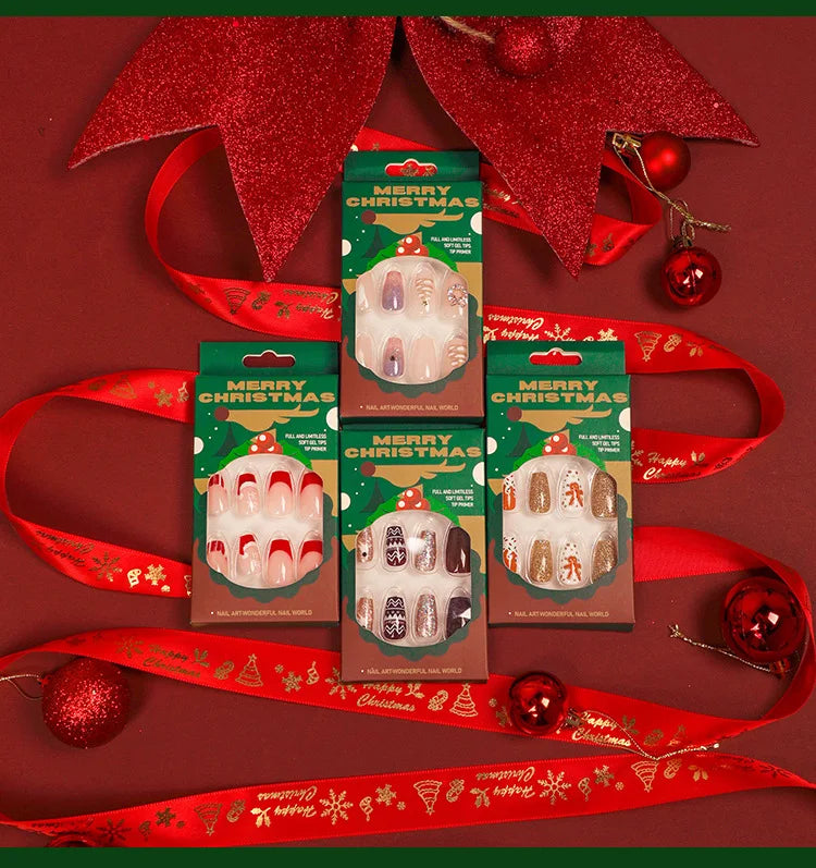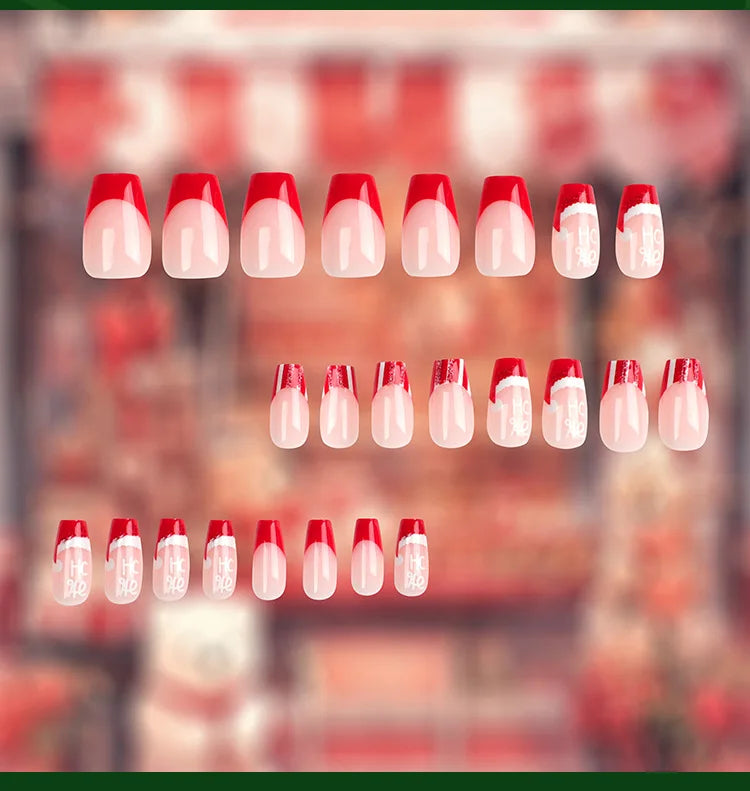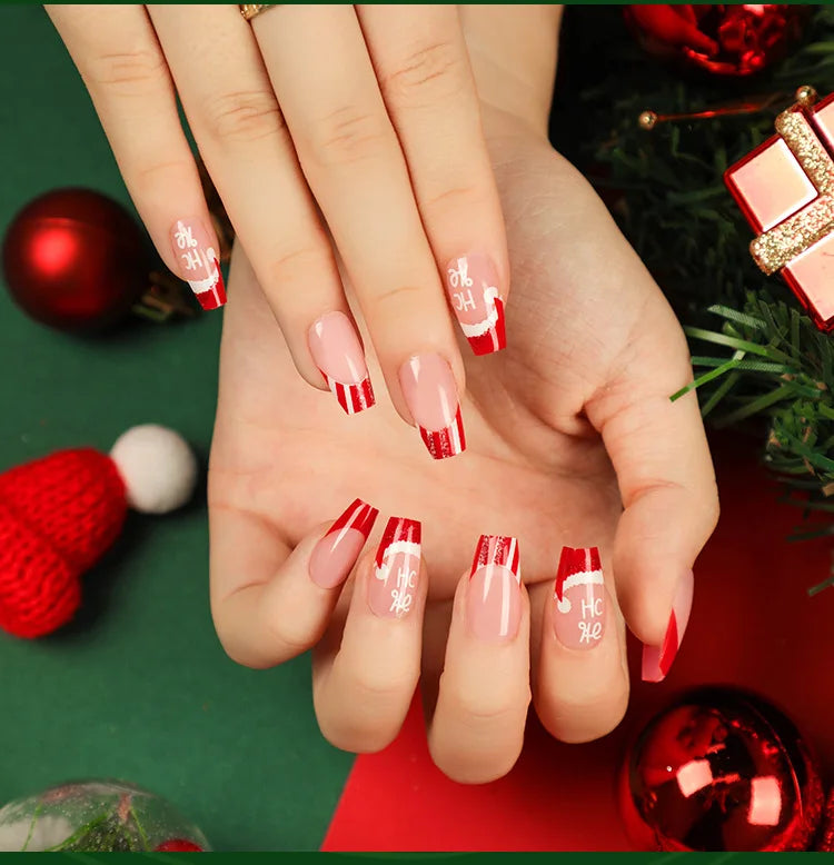 24 Christmas Nails Short Simple | French Press-On Nails–Medium Square Shape