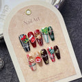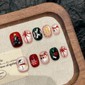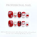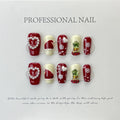 10 Christmas Red Nails | Cute Press on Hand-painted Snowflake Snowman Gingerbread Design