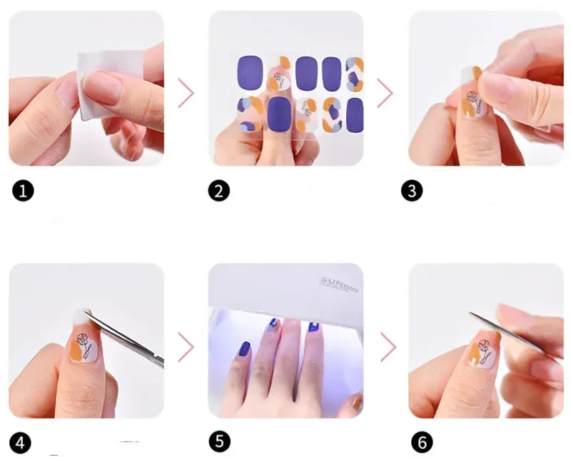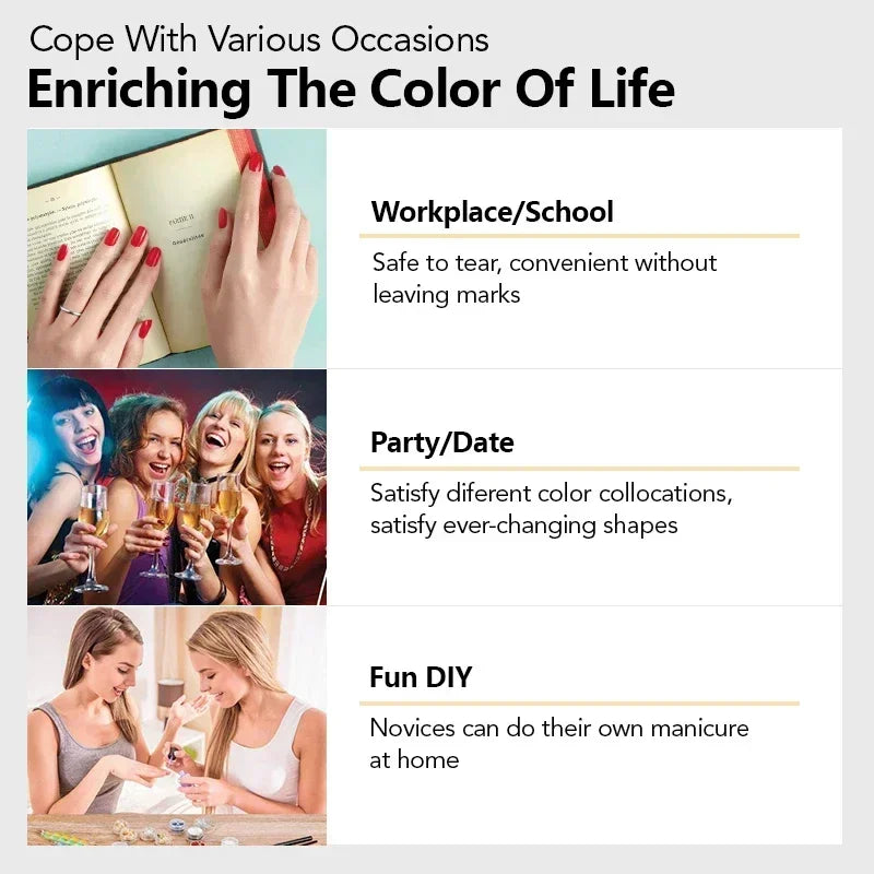 3.After placing them on your nails and curing the remaining 40% with a UV lamp, the gel will completely harden, and the effect will be like applying colorful nail polish in a nail salon.