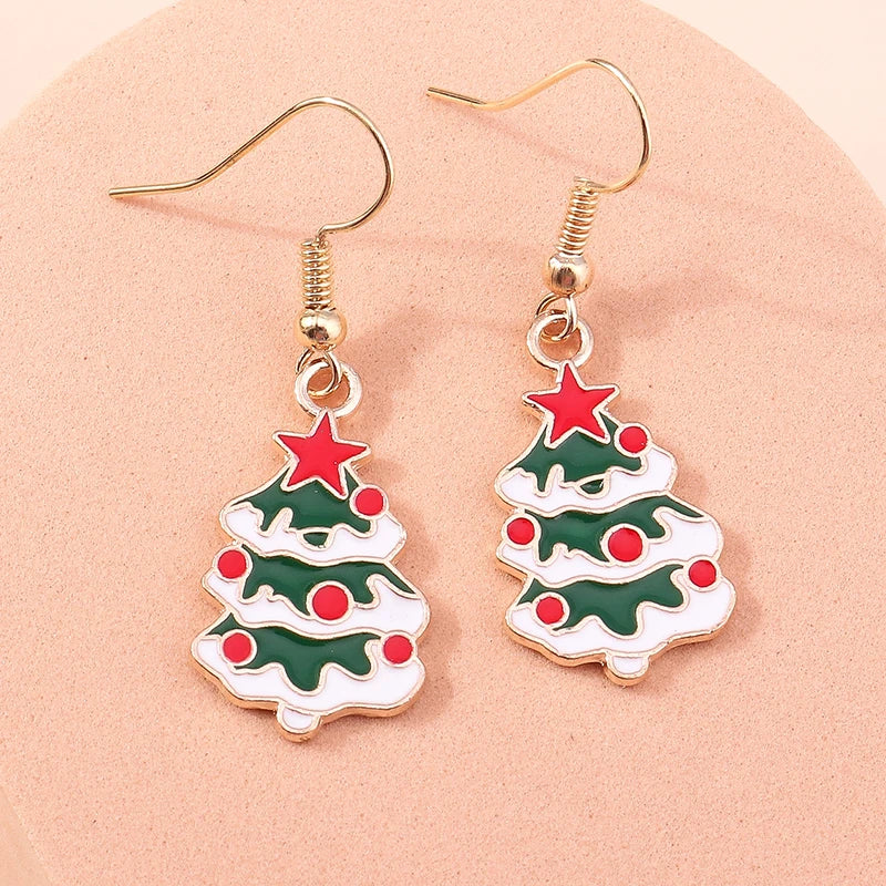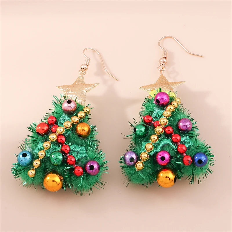 Cute Colorful Christmas Tree Drop Earrings for Women | Festival Christmas Dangle Earrings