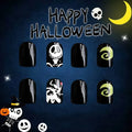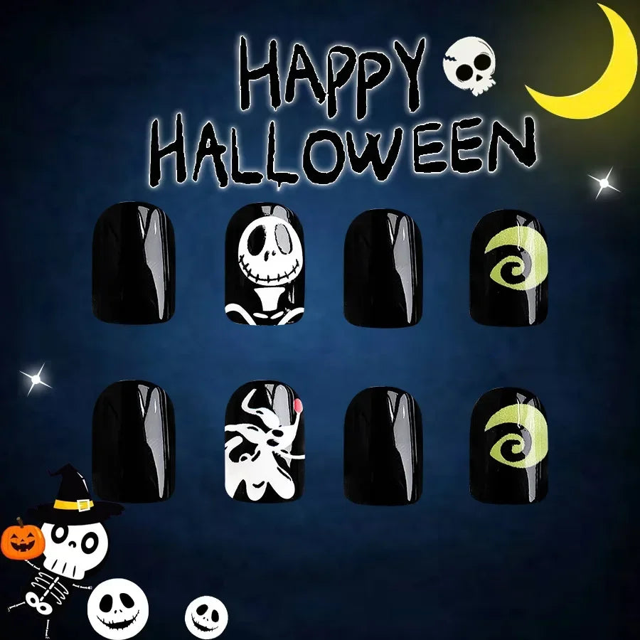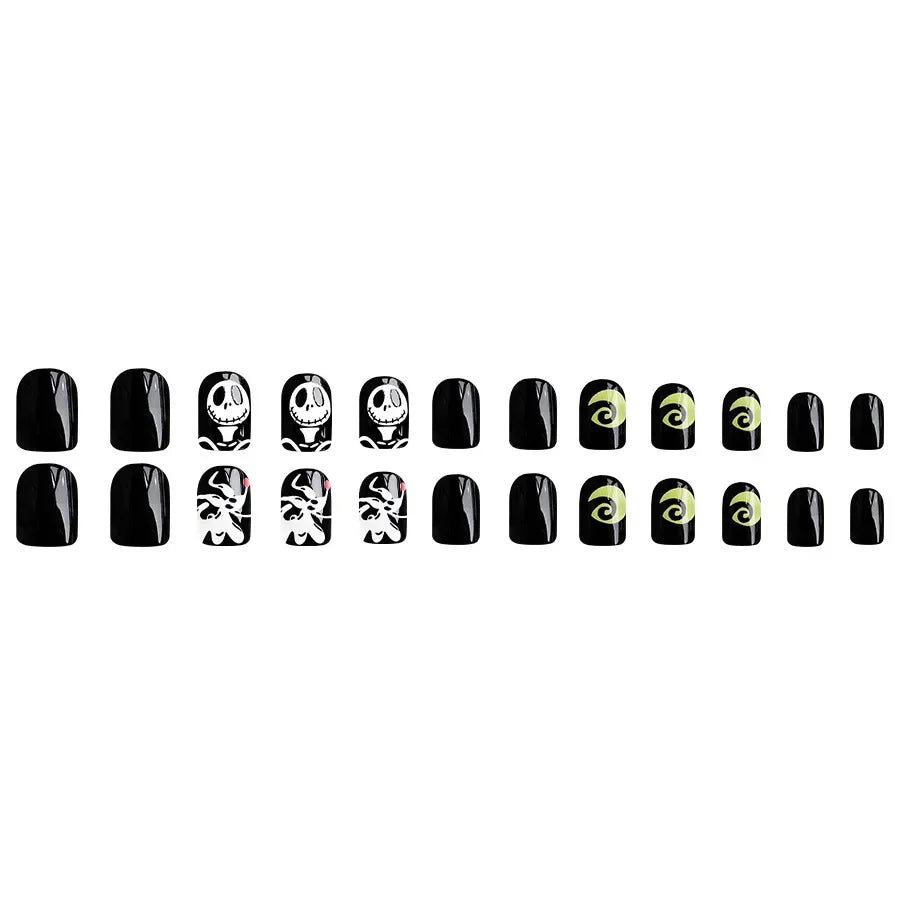 24Pcs Skull Press on Nail Halloween Short Square Cute Naughty Puppy Fake Nail Shiny square Wear Nail for Women&Girl