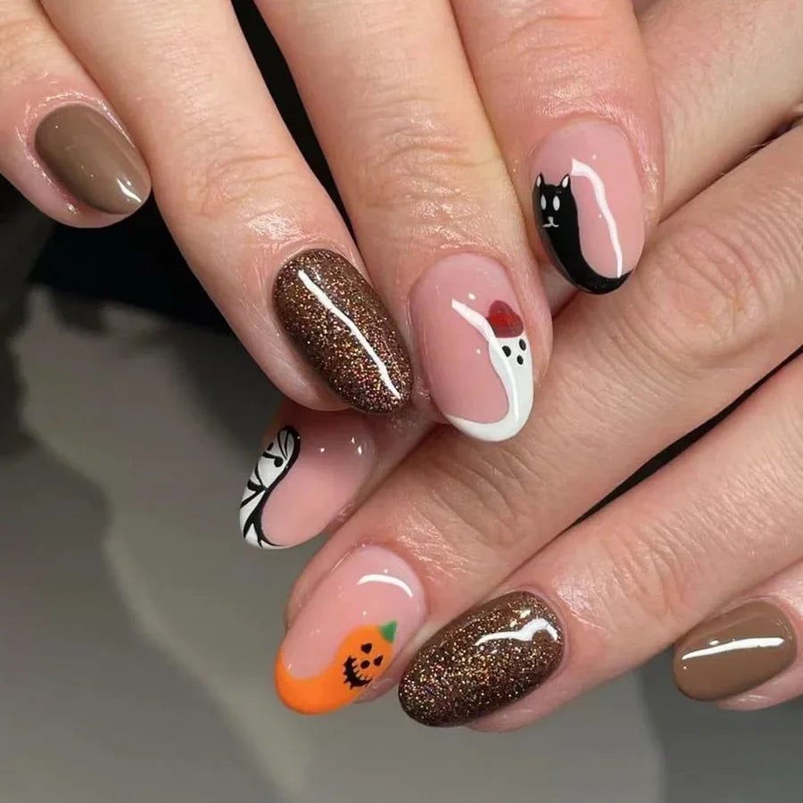 24 Classy Halloween Nails Short | Cute Naughty Puppy Fake Nails Shiny square Wear Nail