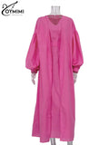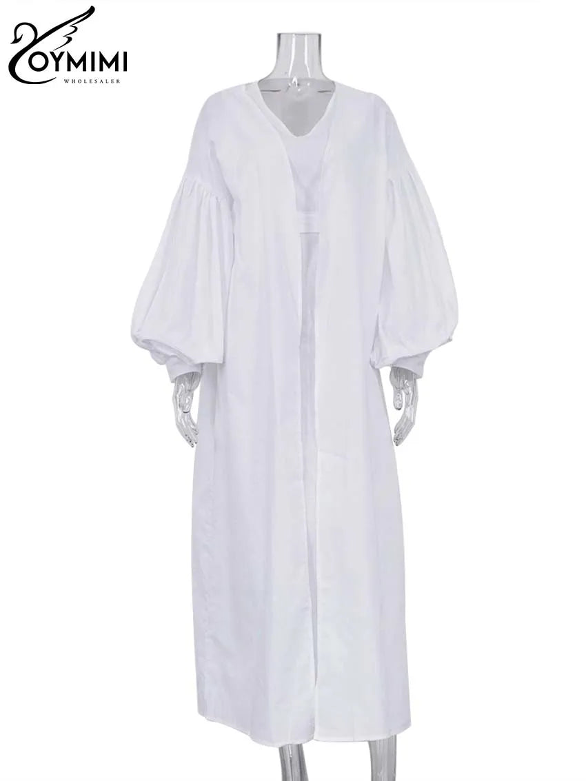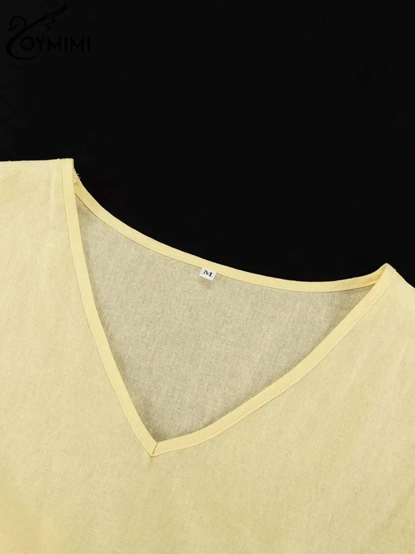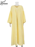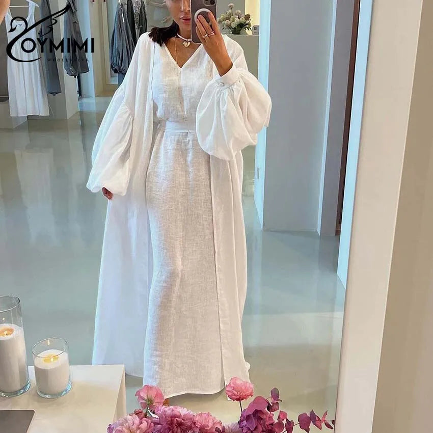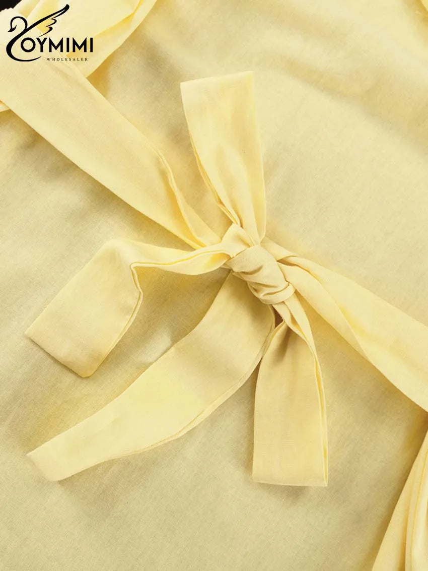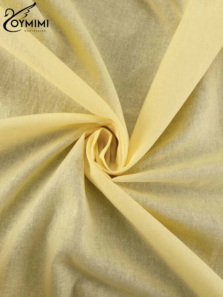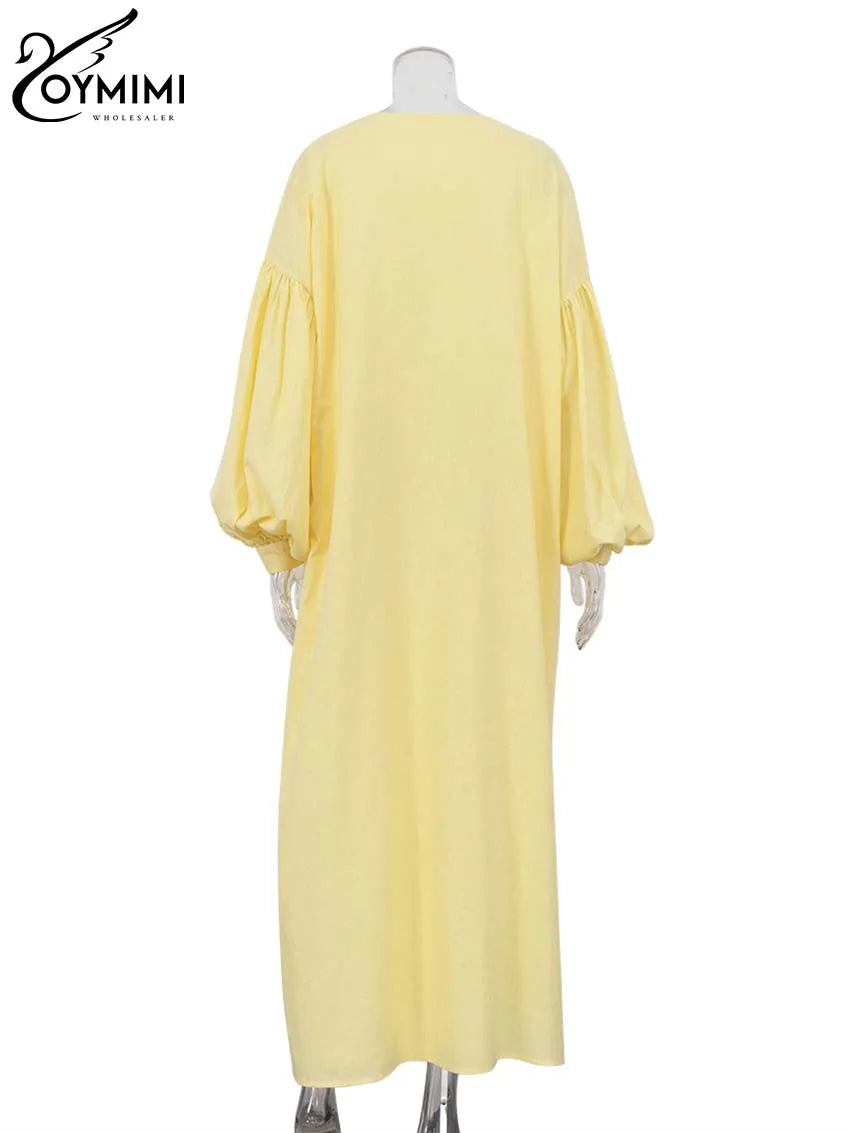 Classy Summer Outfits For Ladies | Oymimi Elegant Yellow Cotton Hemp 2 Pc Sets | Sleeve Robe And V-Neck Sleeveless Floor-Length Dress Sets
