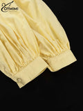 Type1: Yellow Cotton Hemp 2 Pc Sets Womens Outfits