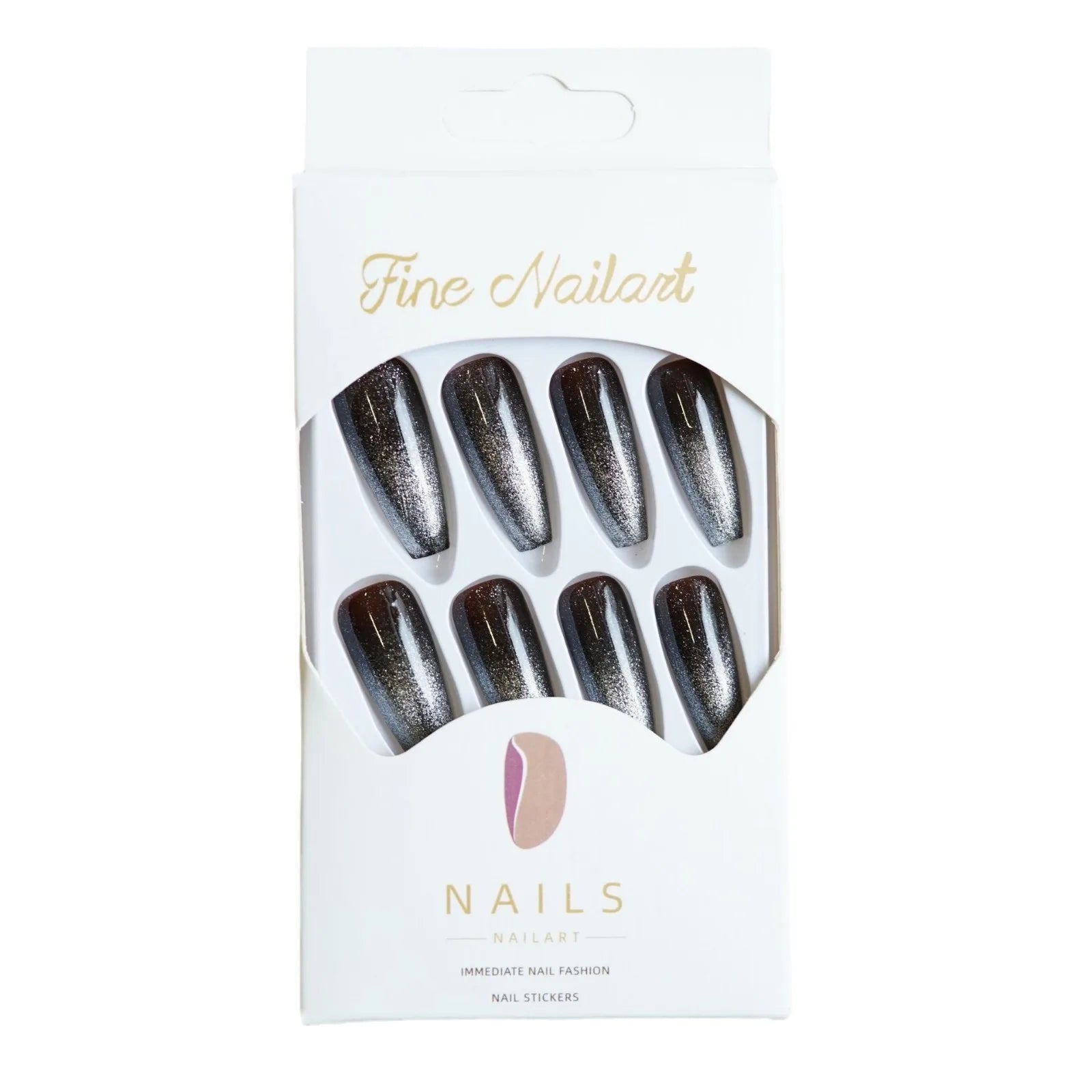 24PCS/1BOX Coffee Cat Eye Nails | Phototherapy Hand-worn Armor Fake Nails