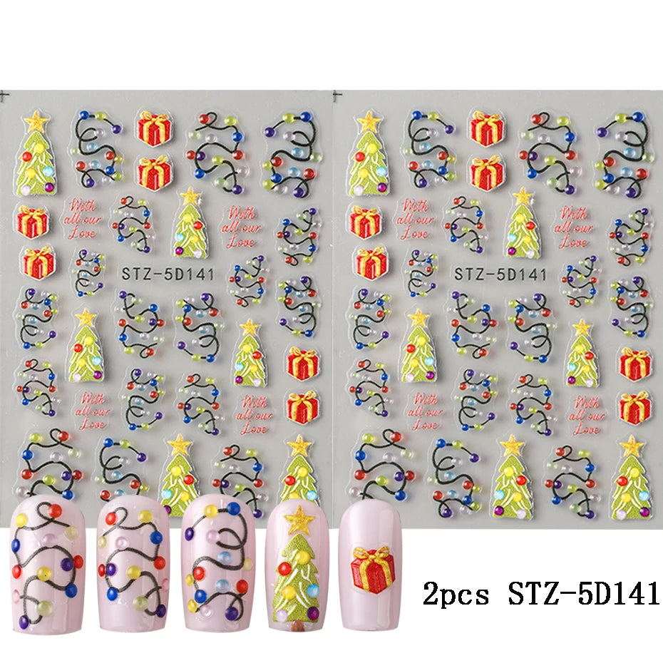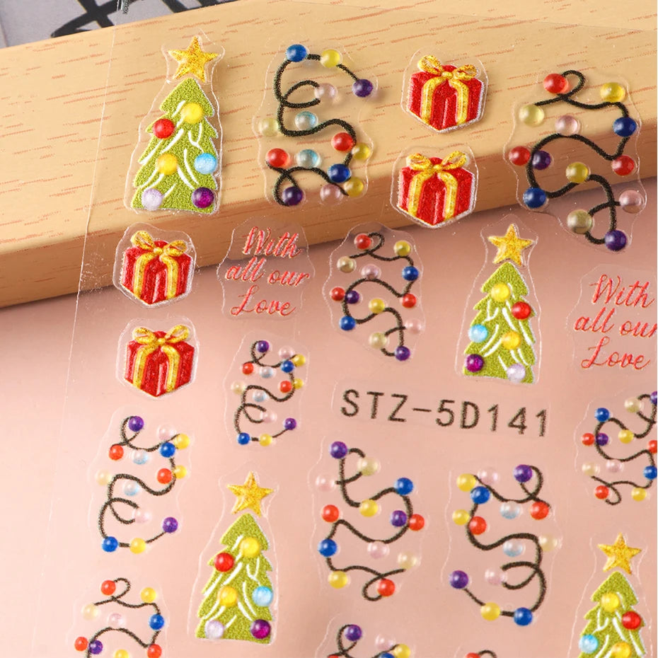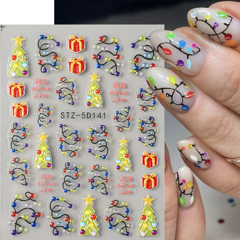 [Style] 1/2pcs Colorful Christmas Light Strips Nail Art Stickers Green Christmas Tree with Red Gift Decals DIY Manicure Decoration Tips