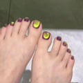 24 Colorful Toe Nail Designs | Cat Eyes Short Square Press On Toes Nails | Summer DIY Manicure
