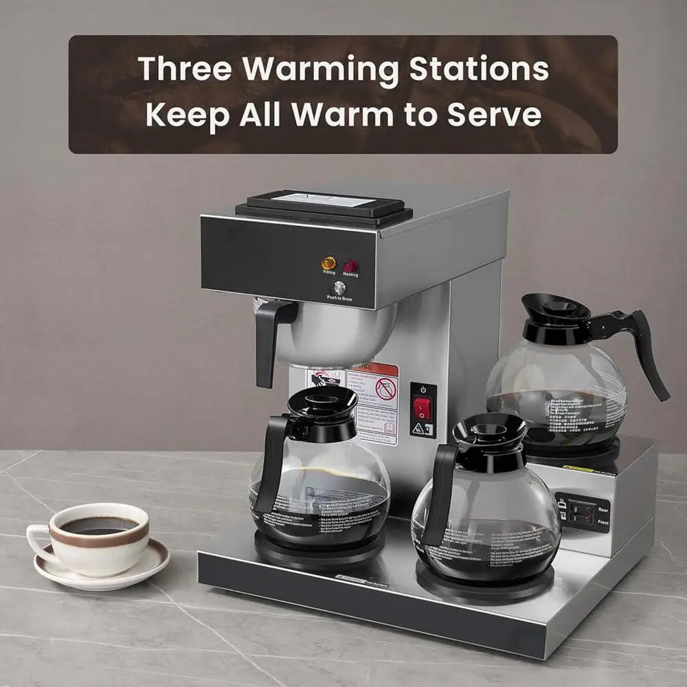 Commercial Drip Coffee Maker with 3 Warmers Drip Free Carafes Multi Stream Spray Head