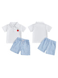 Toddler Baby Boy Back to School Outfit Apple Embroidered Short Sleeve Collared Shirts Grid Elastic Waist Shorts 2Pcs Set