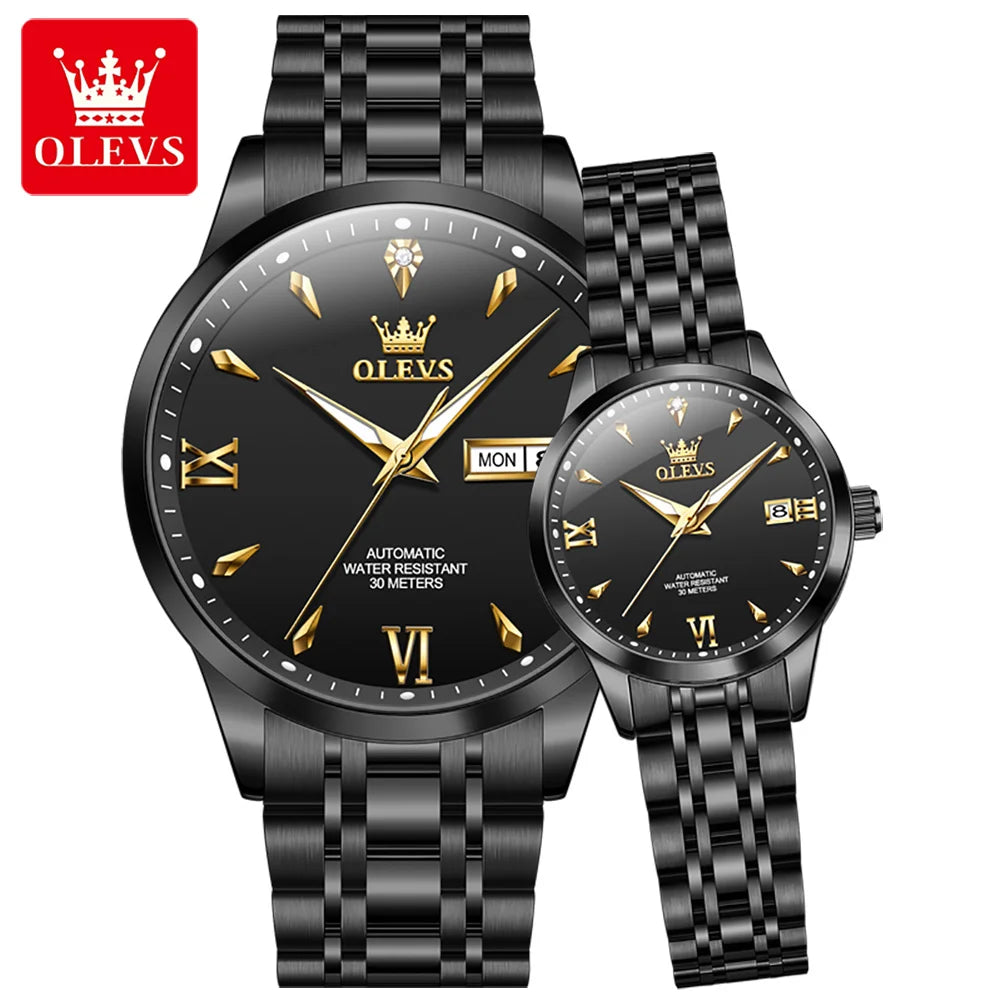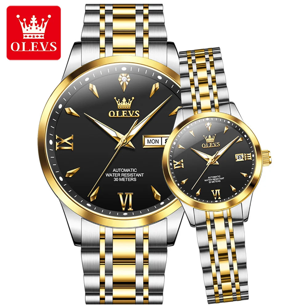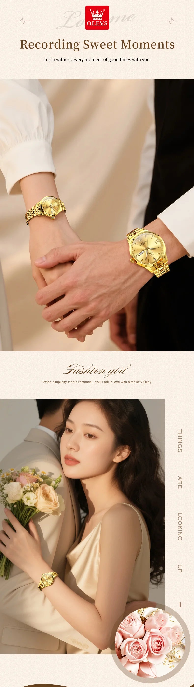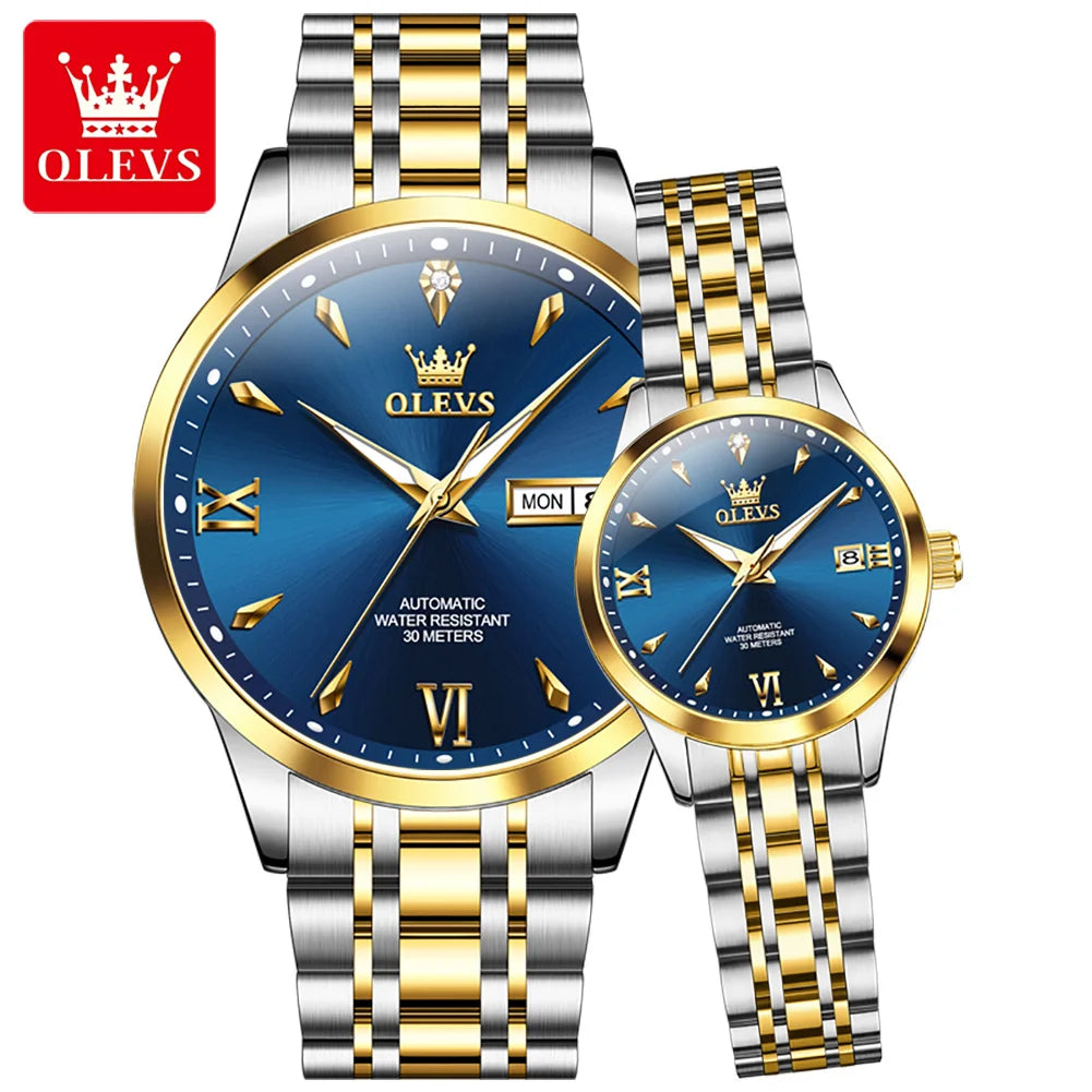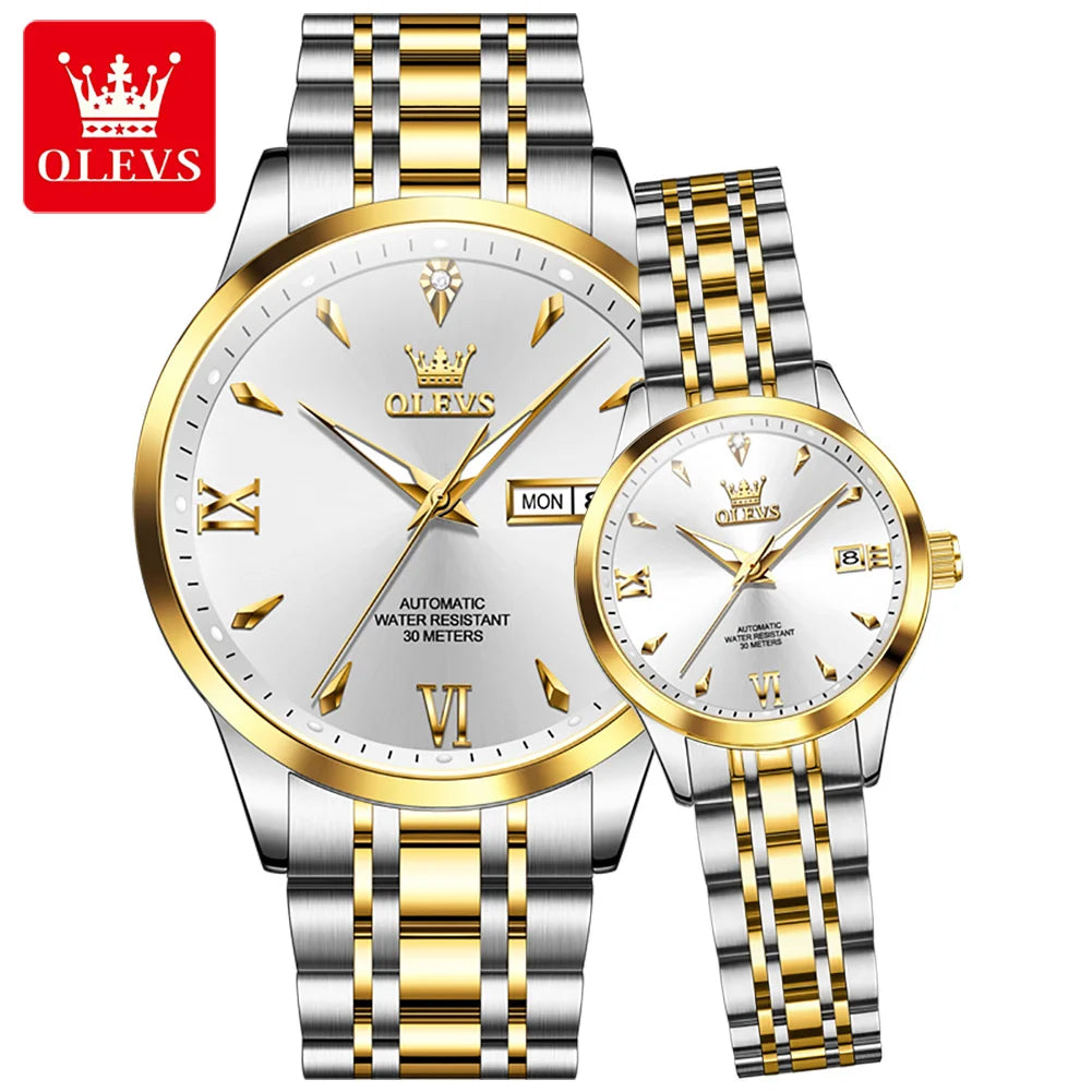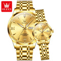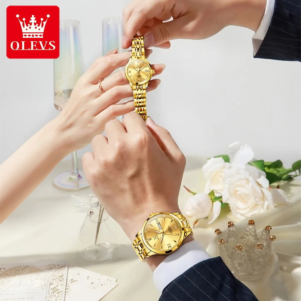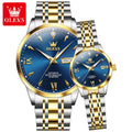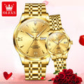 OLEVS 9956 Couple Watch for Men Women | Ducal Calendar Diamond Roman Scale Luxury Wristwatch