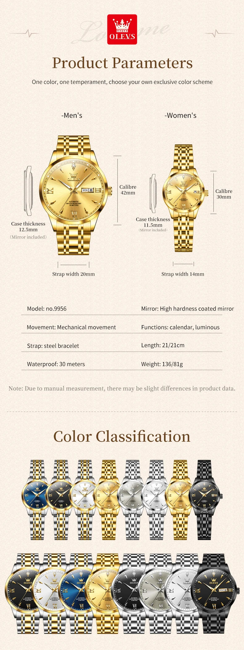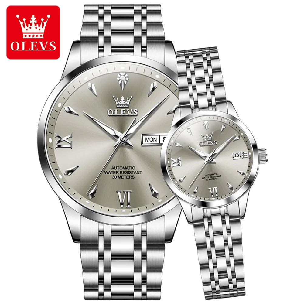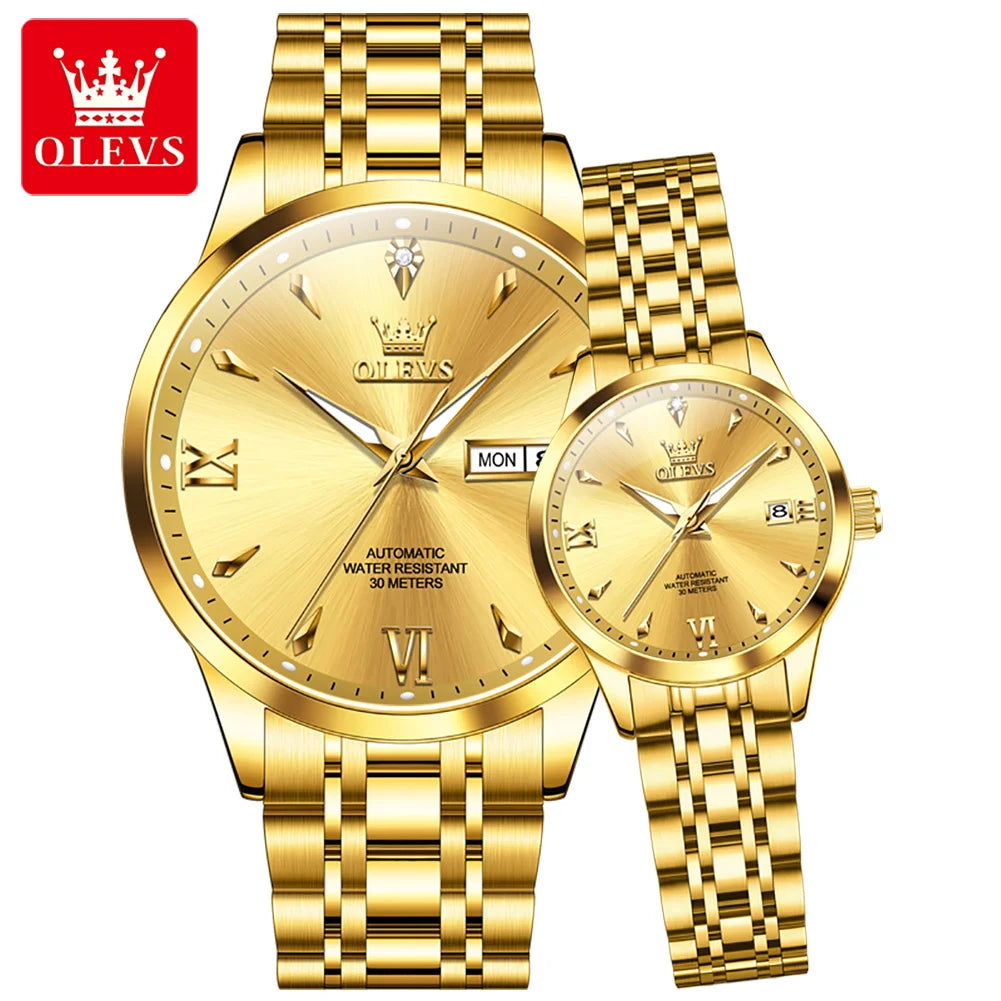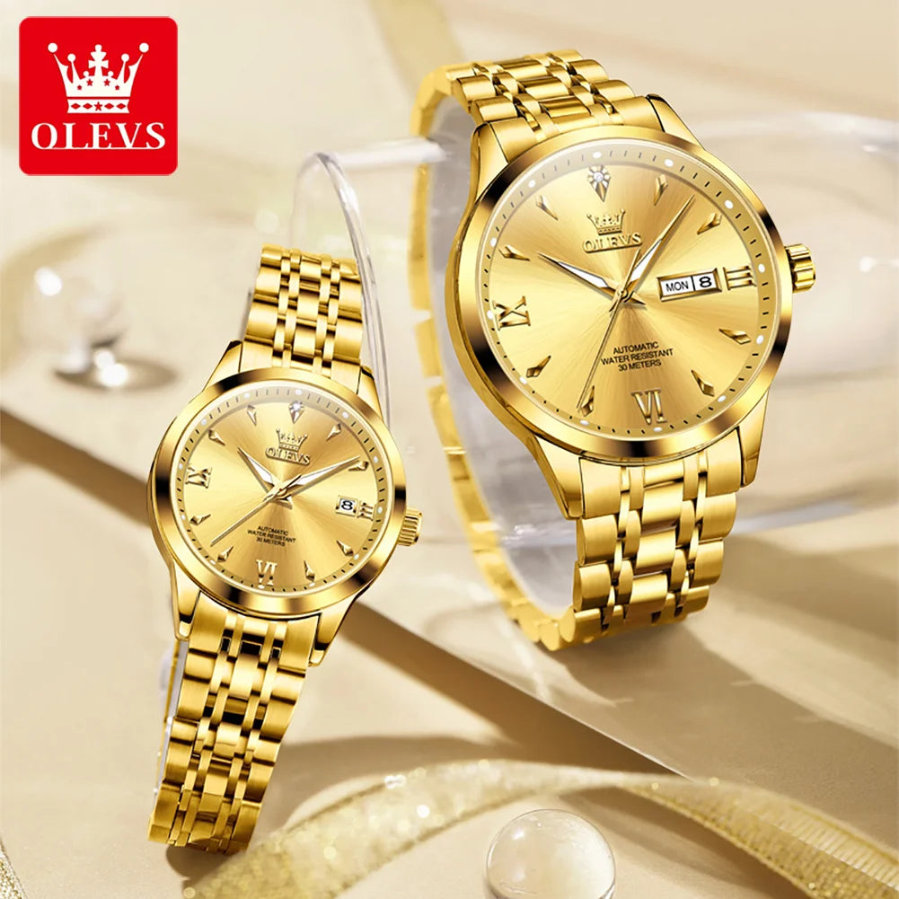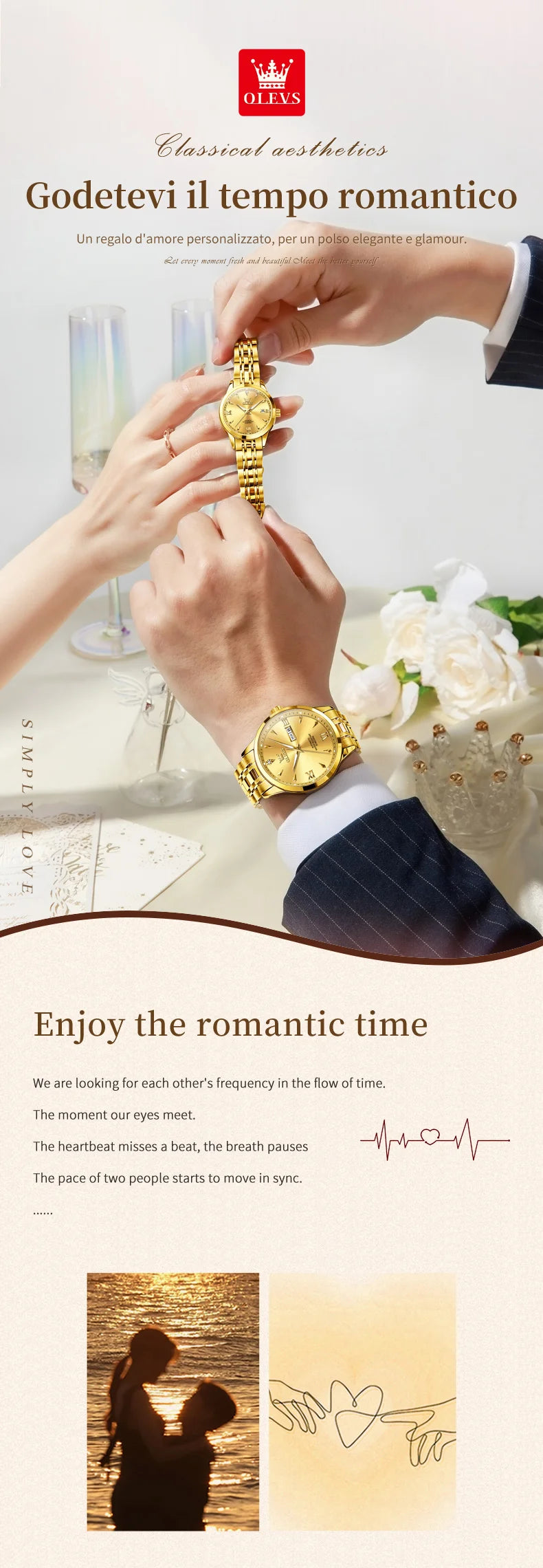 OLEVS 9956 Couple Watch for Men Women | Ducal Calendar Diamond Roman Scale Luxury Wristwatch