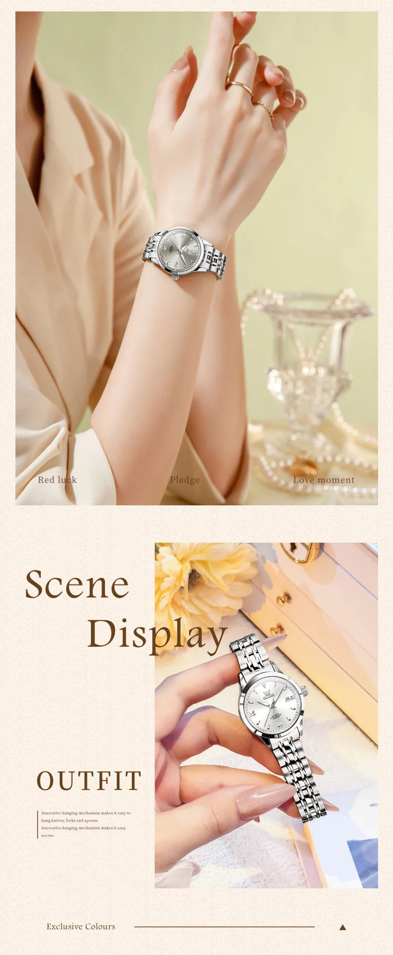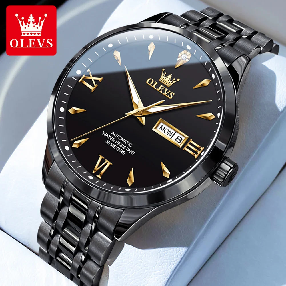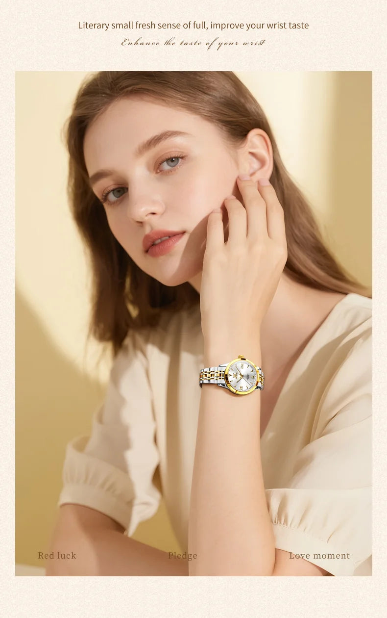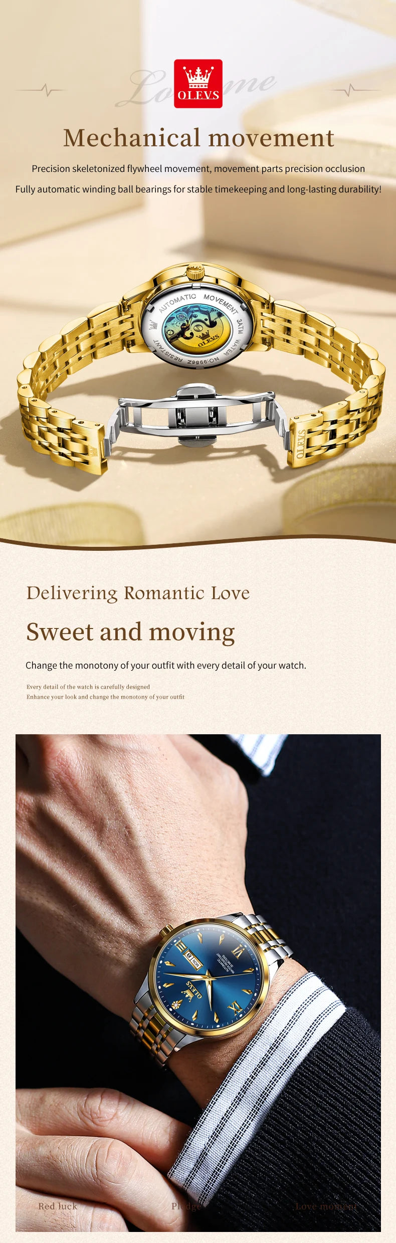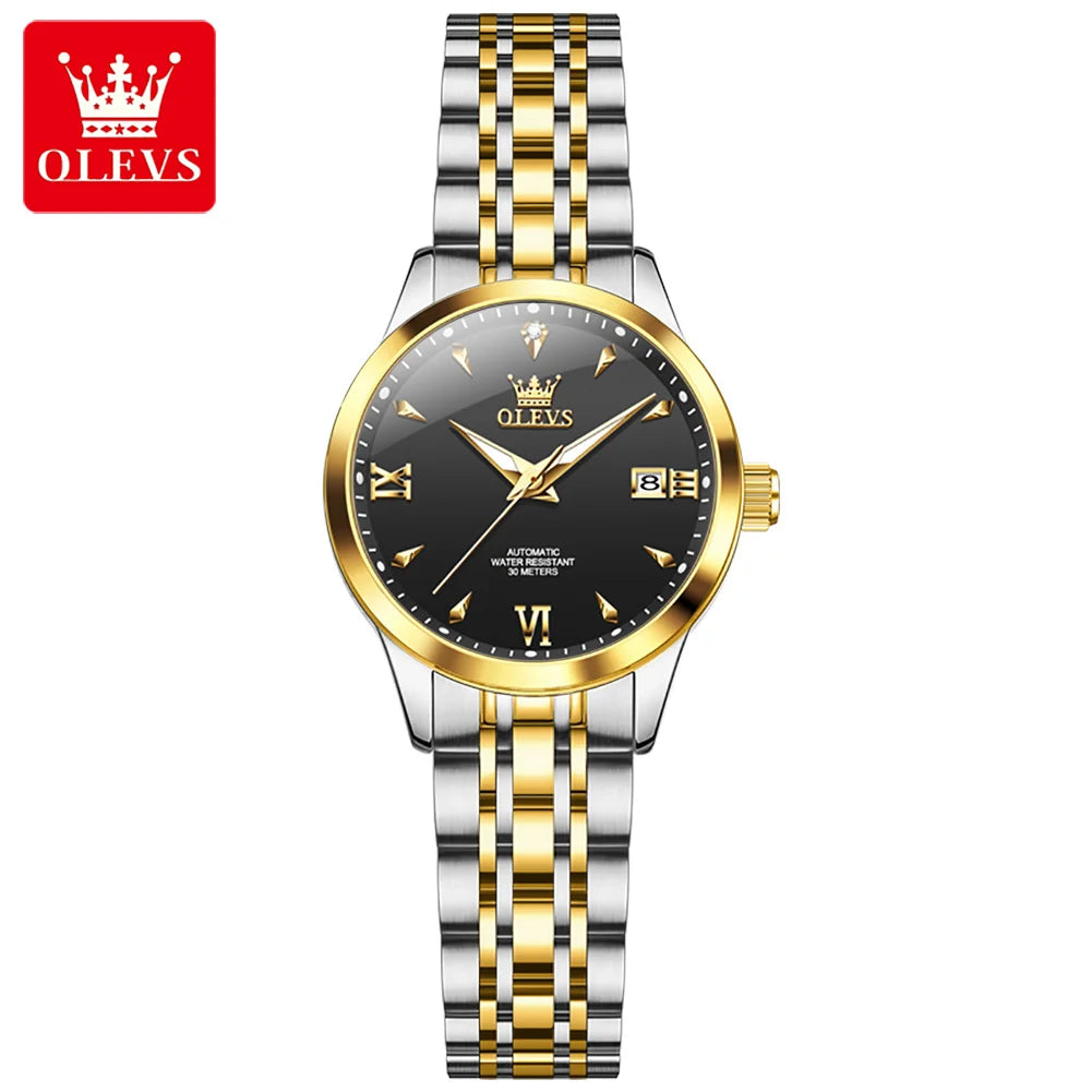 OLEVS 9956 Couple Watch for Men Women | Ducal Calendar Diamond Roman Scale Luxury Wristwatch