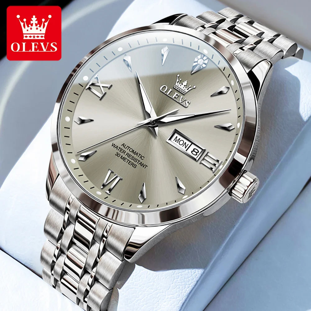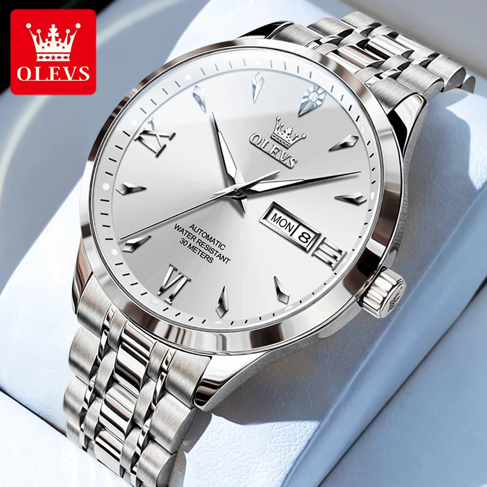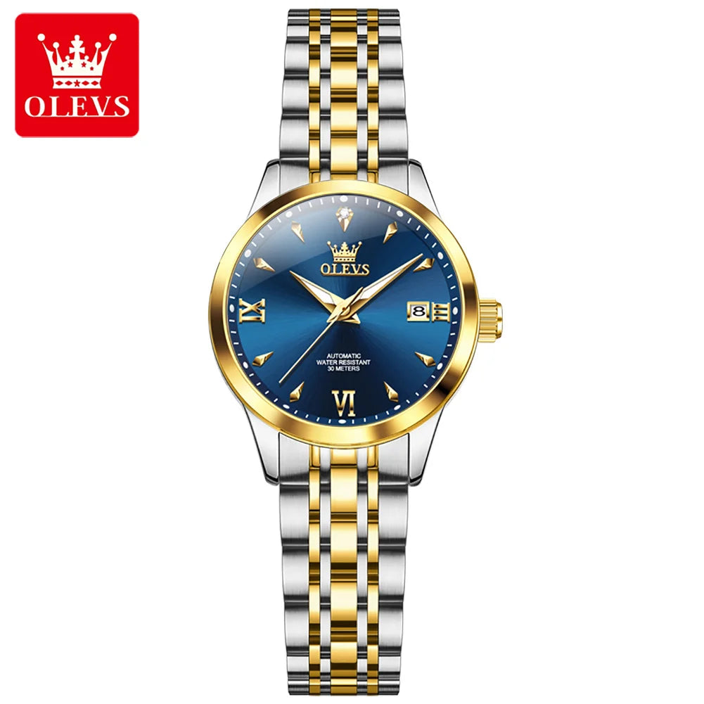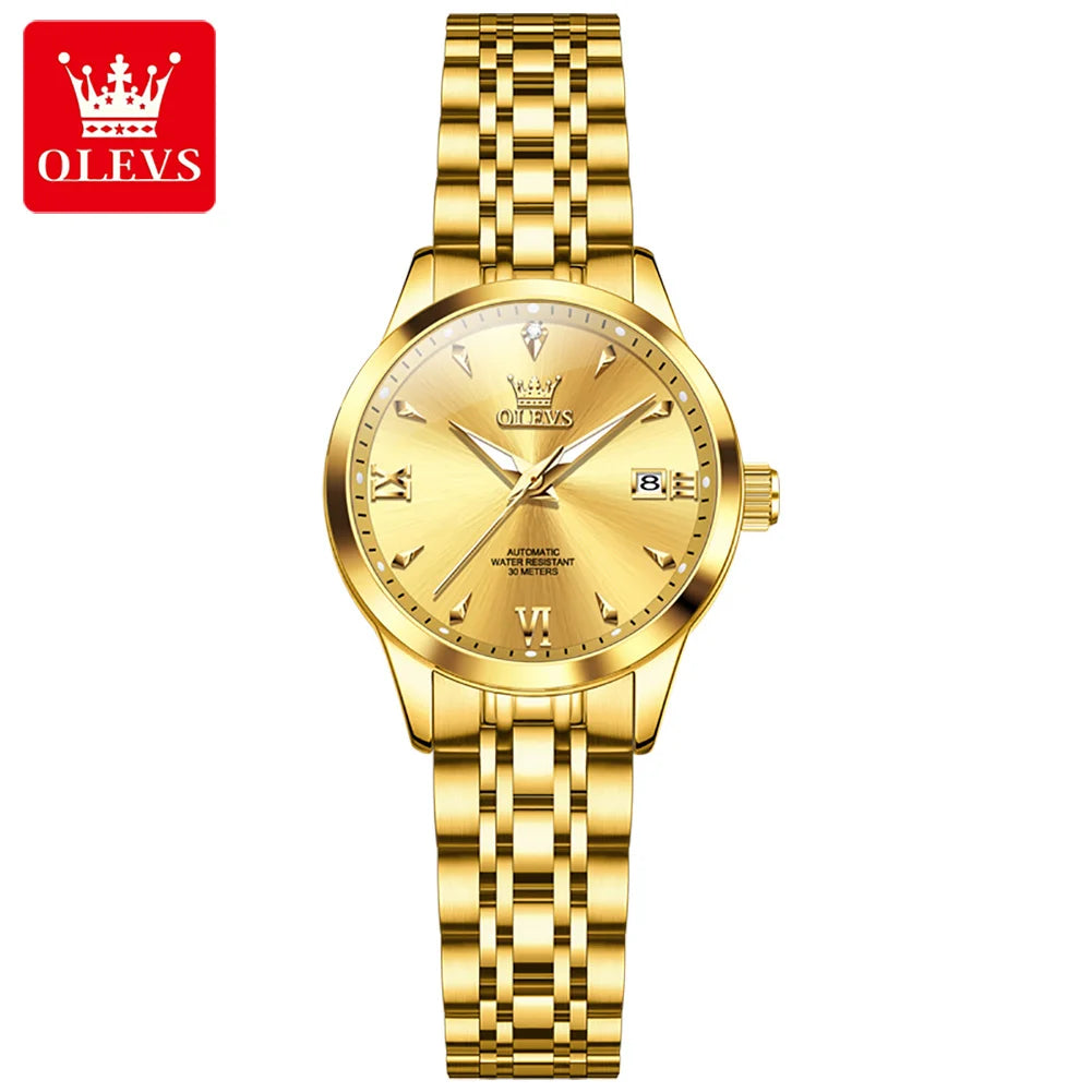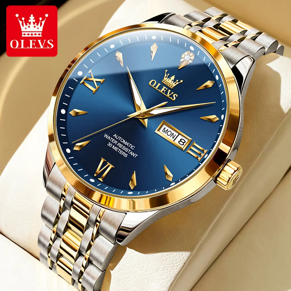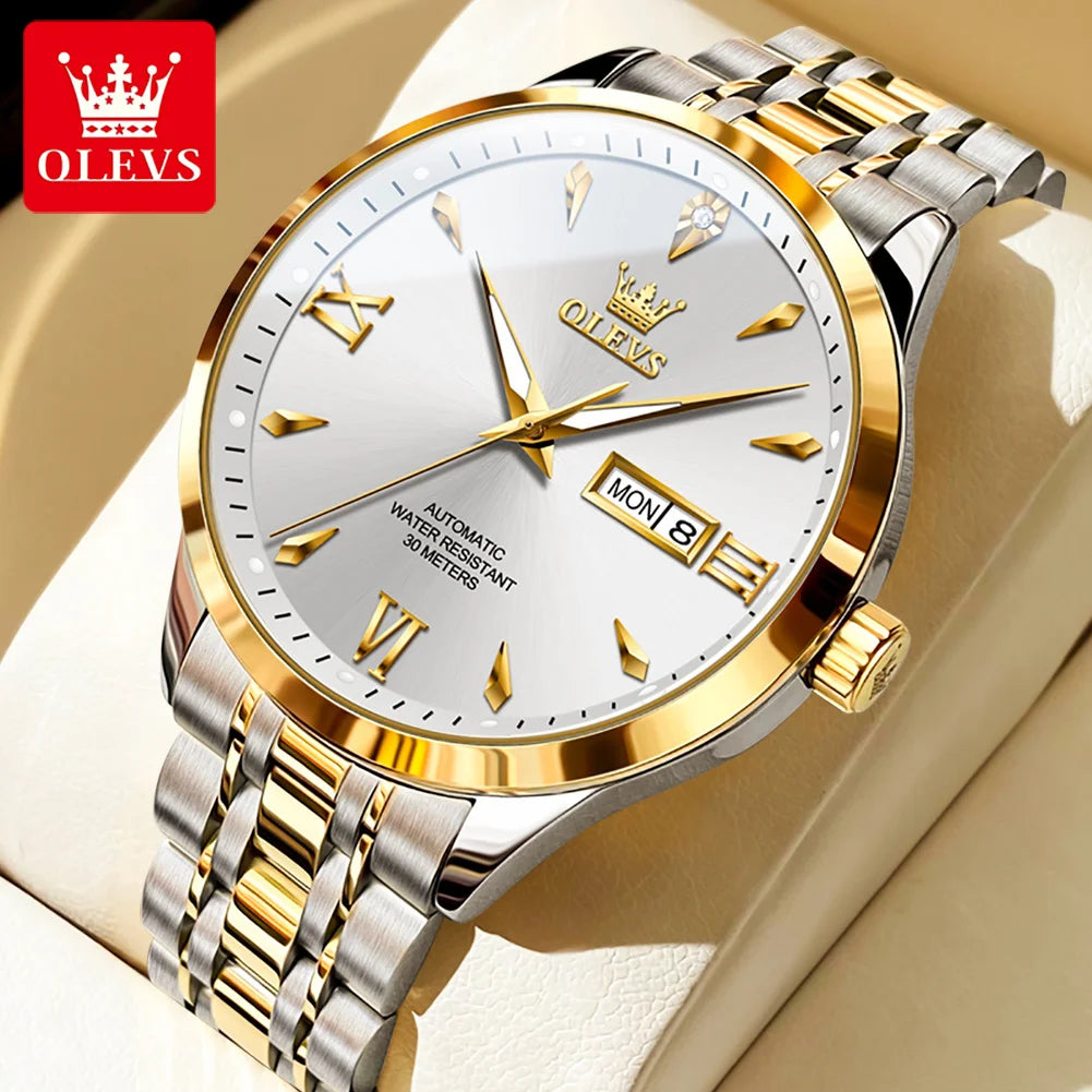 OLEVS 9956 Couple Watch for Men Women | Ducal Calendar Diamond Roman Scale Luxury Wristwatch