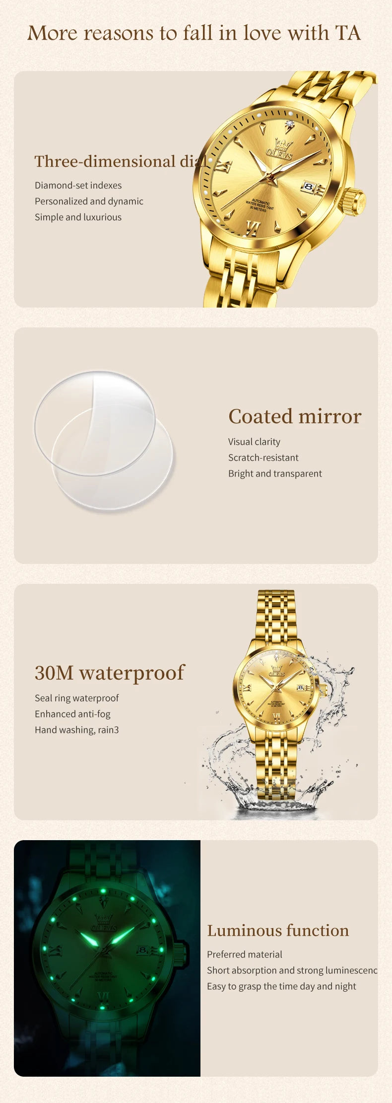 Feature: Shock Resistant,Luminous,Auto Date,Complete Calendar,Water-Resistance,Week Display,Luminous Hands