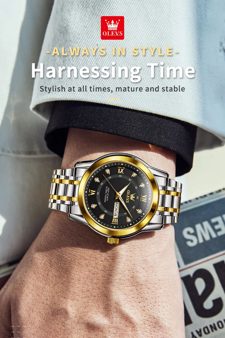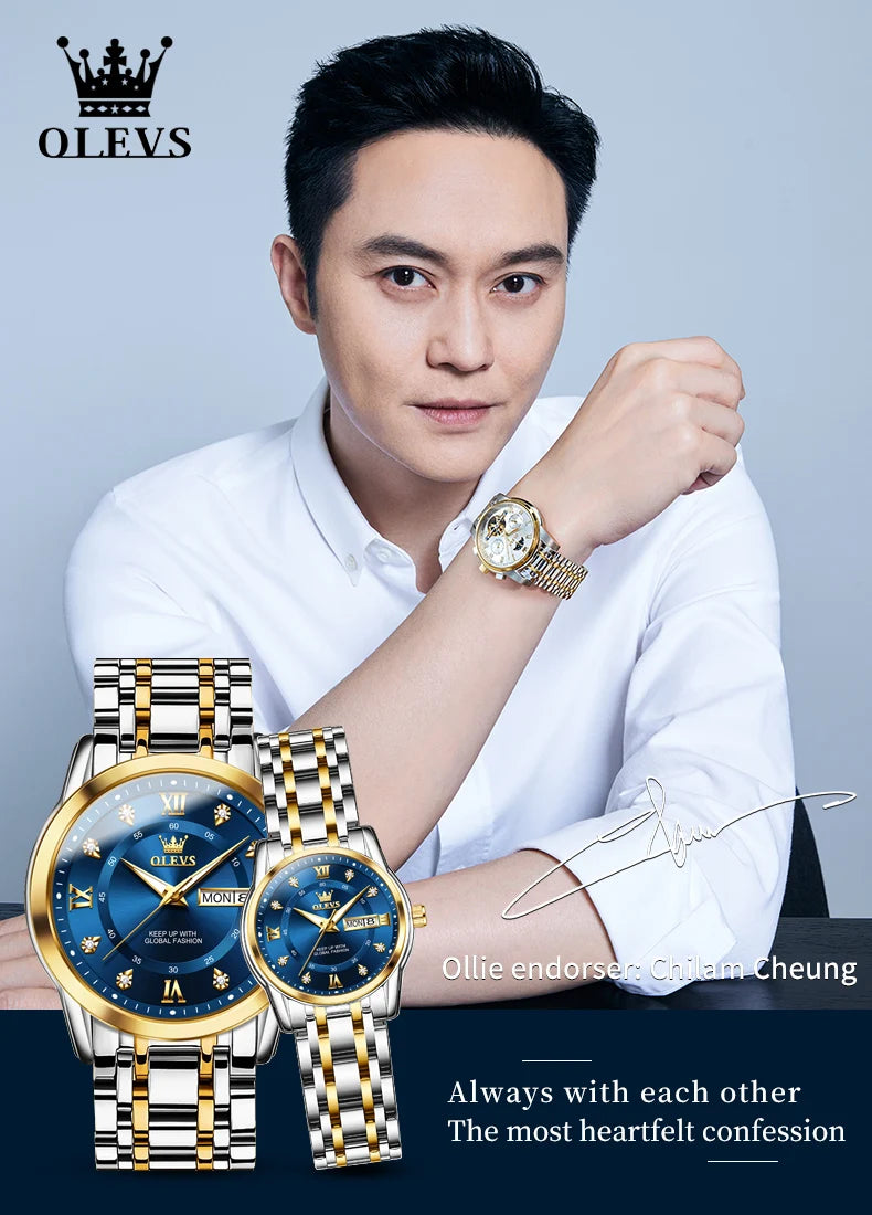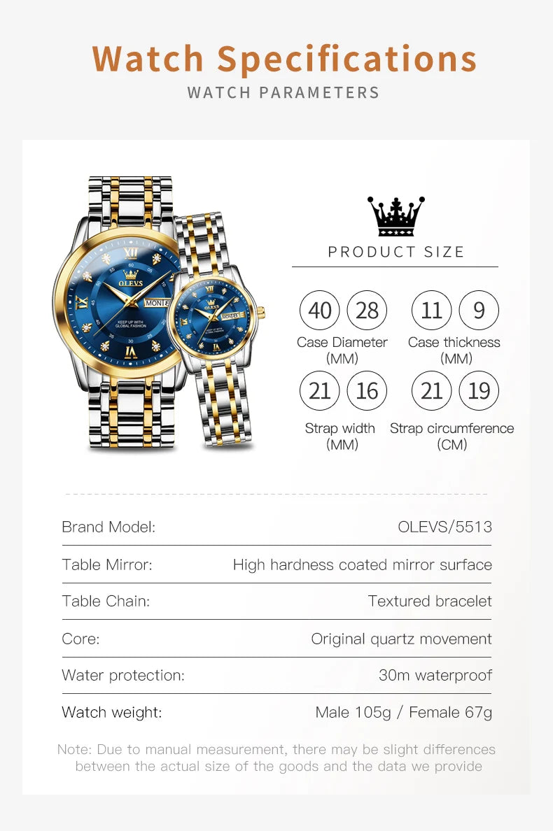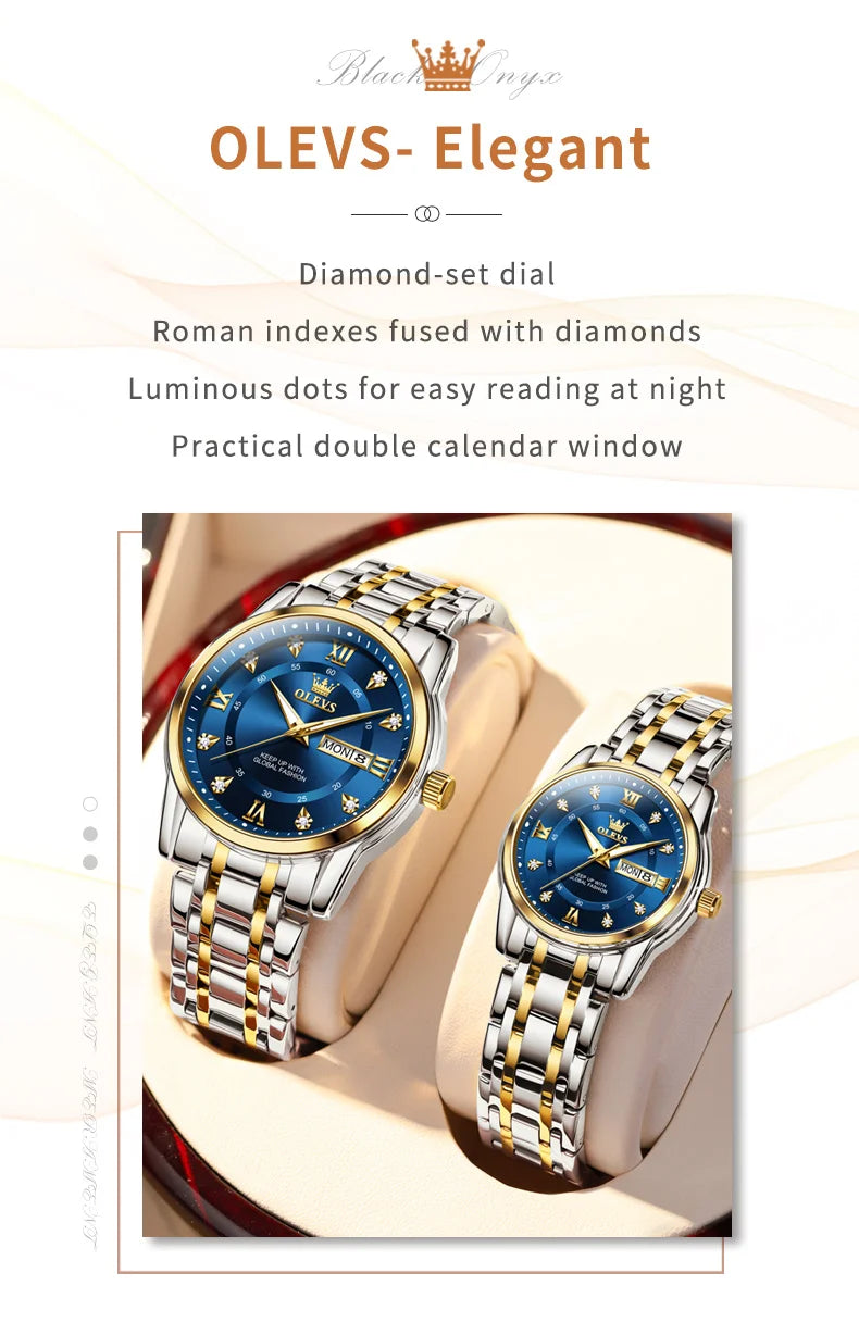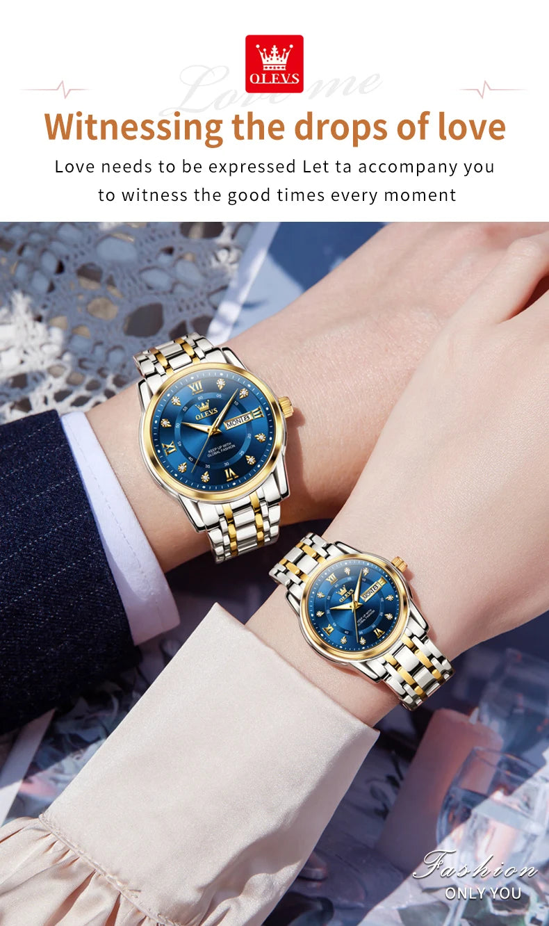 OLEVS 5513 Couple Watch For Wedding | Stainless Steel Waterproof Double Calendar Trendy Quartz Watch