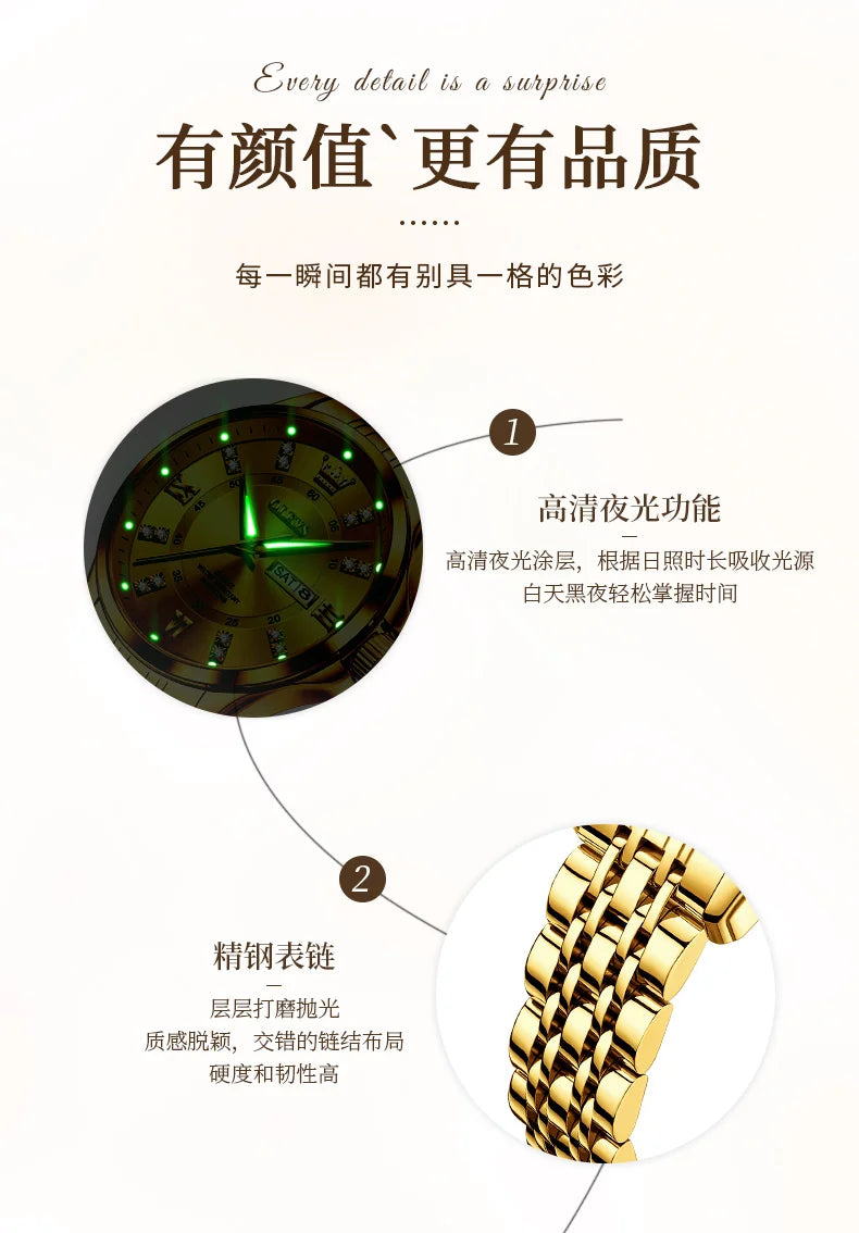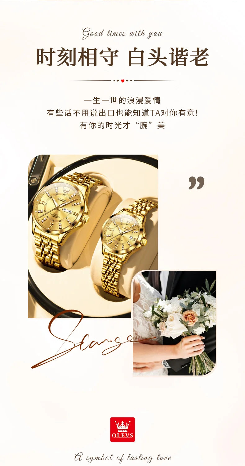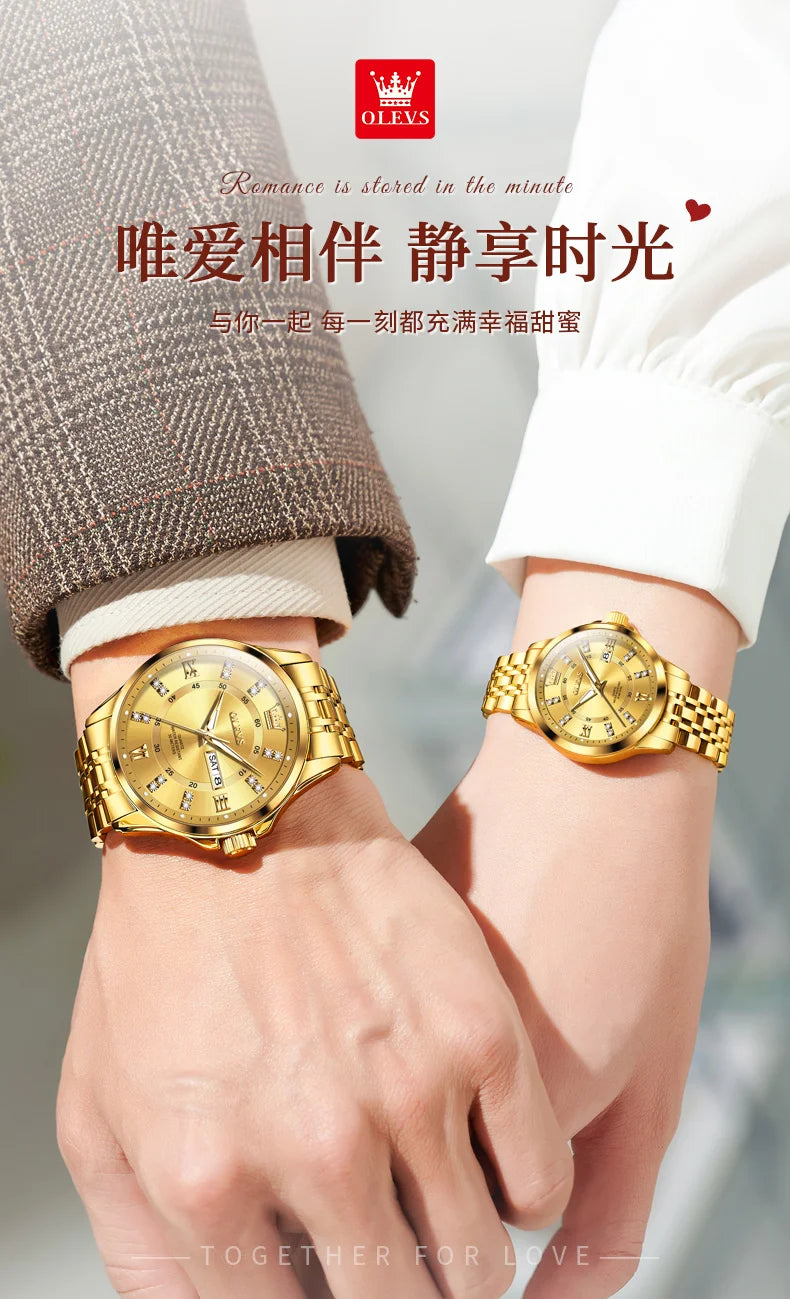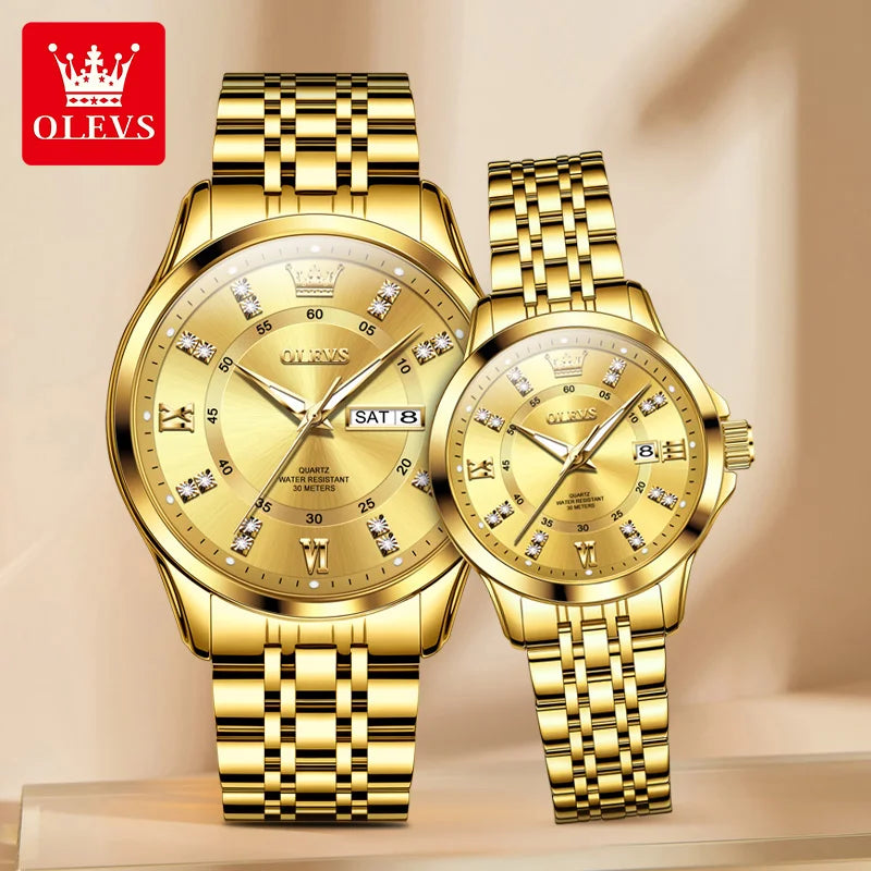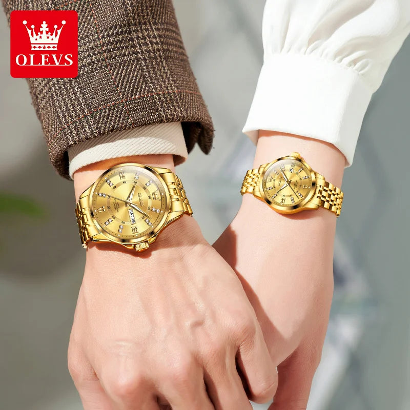 OLEVS Original couple Wrist Watch | Waterproof Luminous Quartz Watch | Stainless Steel Strap Temperament Wristwatch