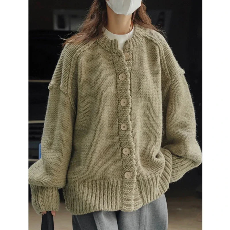 Crew Neck Cardigan Sweater | Casual Button Single-breasted Knitwear Top