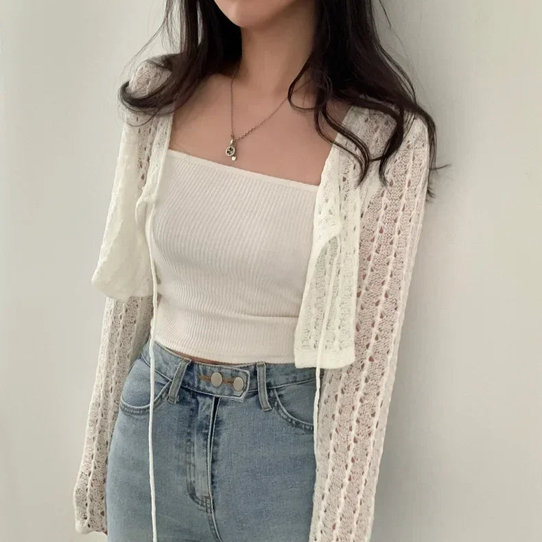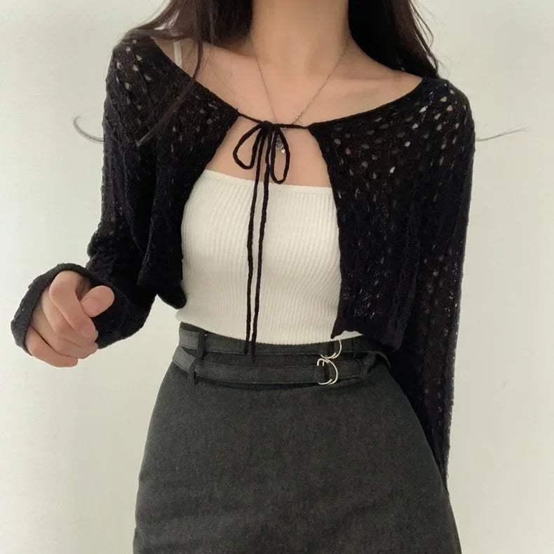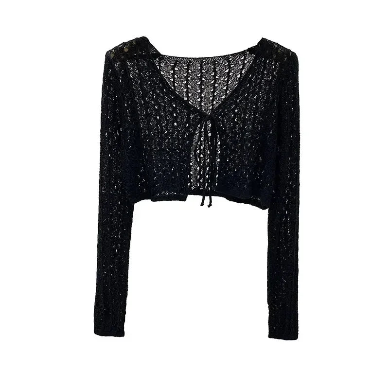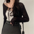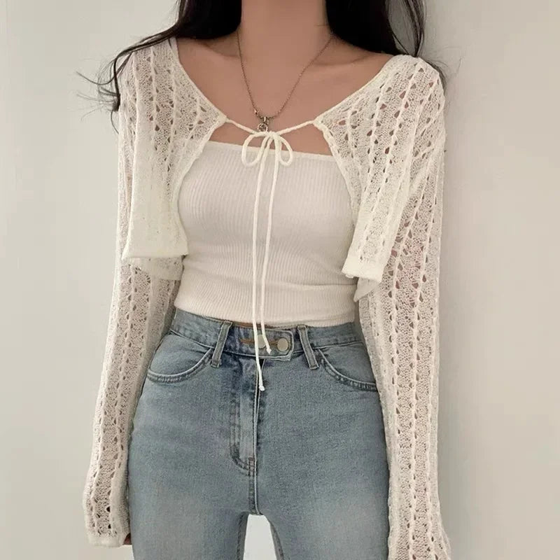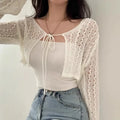 Crop Cardigan sweater | Sheer Openwork Crochet Knit Top Lightweight Sweater