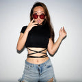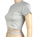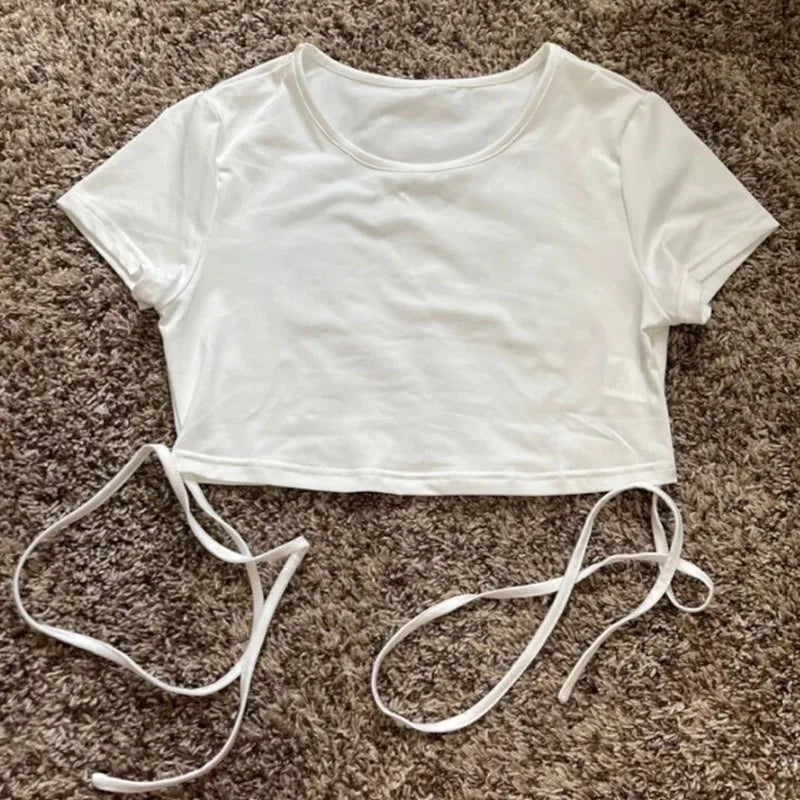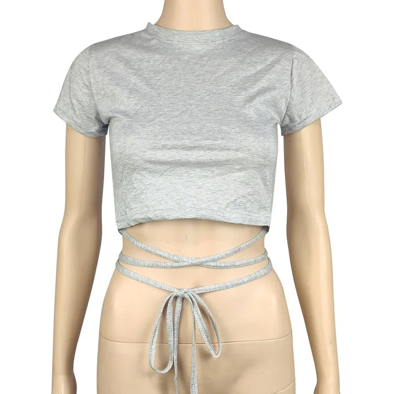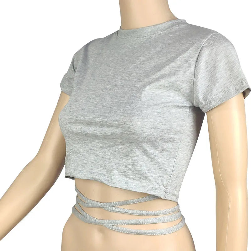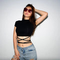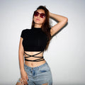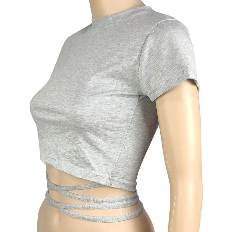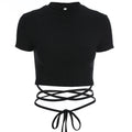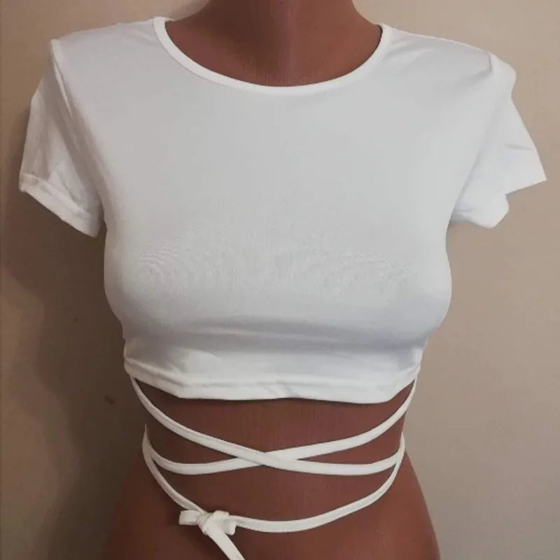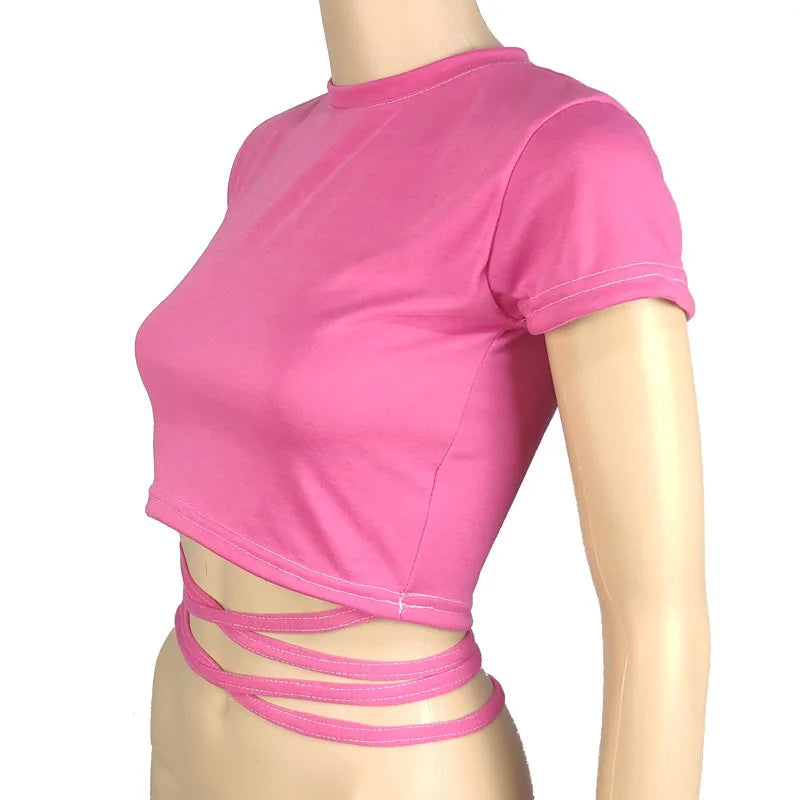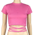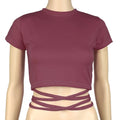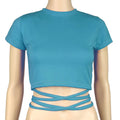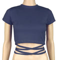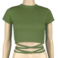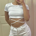 New O-Neck Solid Summer Cross Bandage Tee | Sexy Short Sleeve Camisole Casual Tank Top