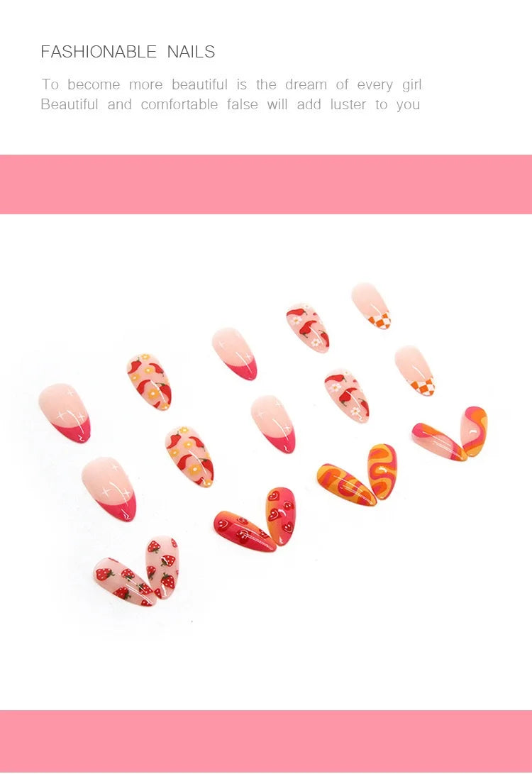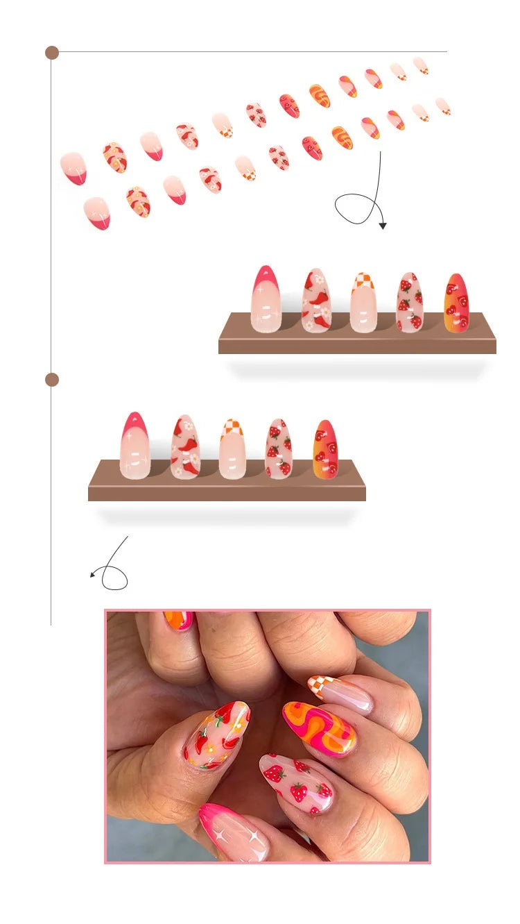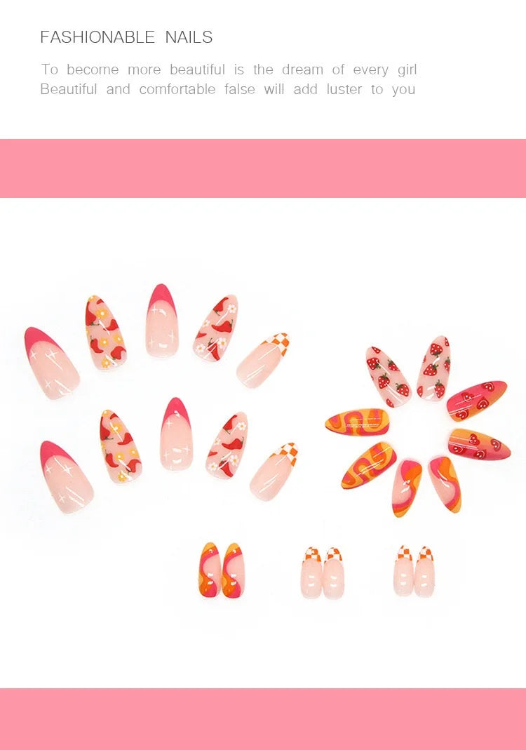 24 Cute Valentines Nails | Sharp Nail Drops Cute Themed Vegetable & Fruit Combination False Nails