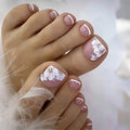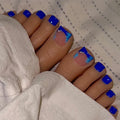 24 Dark Blue Toenails | French Design False Nail for Woman | Pearl Reusable Full Cover Nails Tips