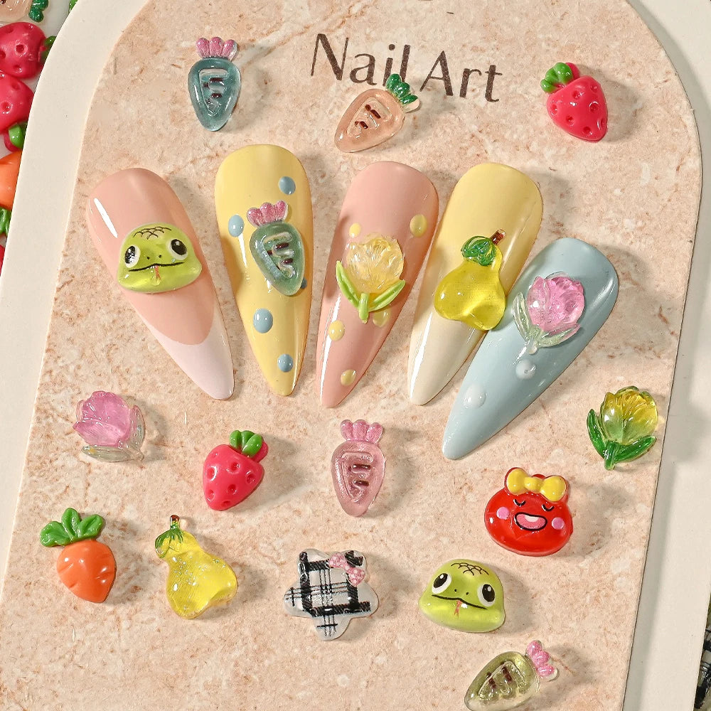 Appro 300pcs Cute Cartoon Snake Mixed Nail Charms 3D Resin Little Star Snake Tulip Carrot Nail Art Decor DIY Crafts Nail Jewelry