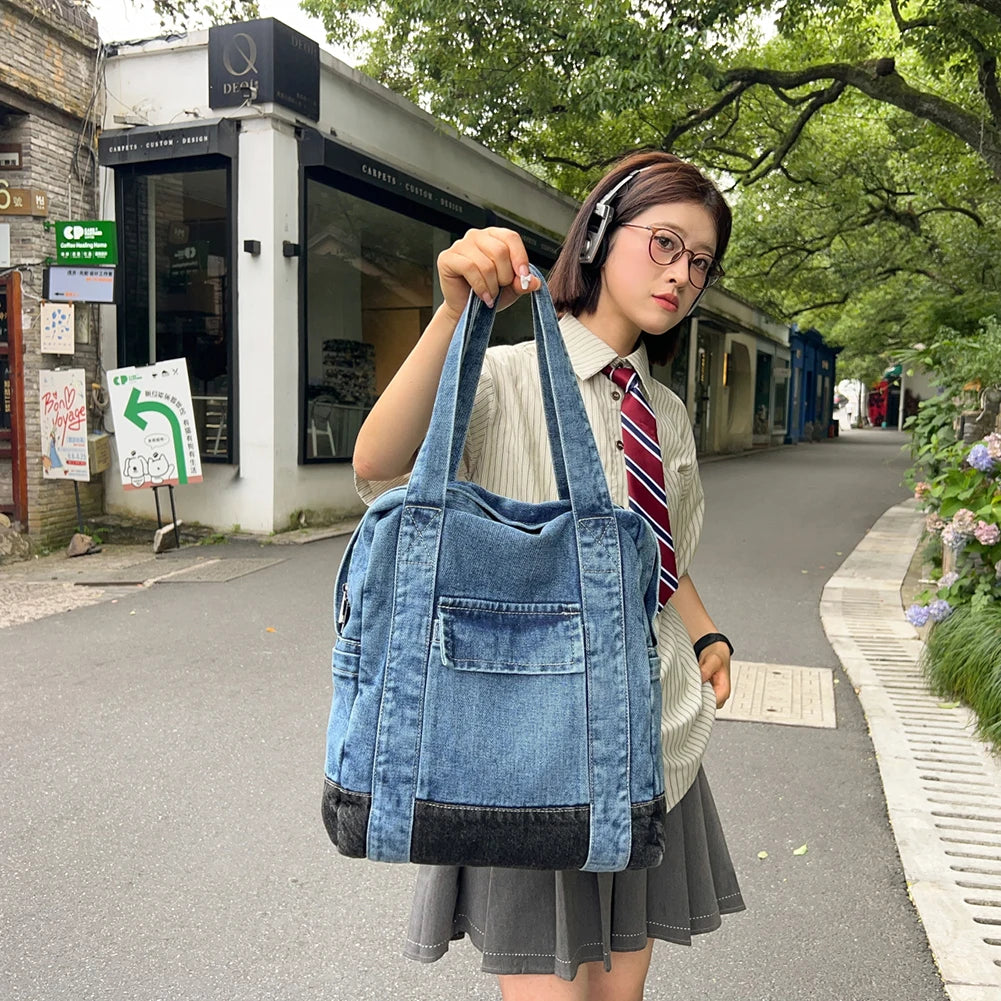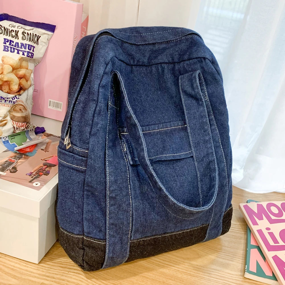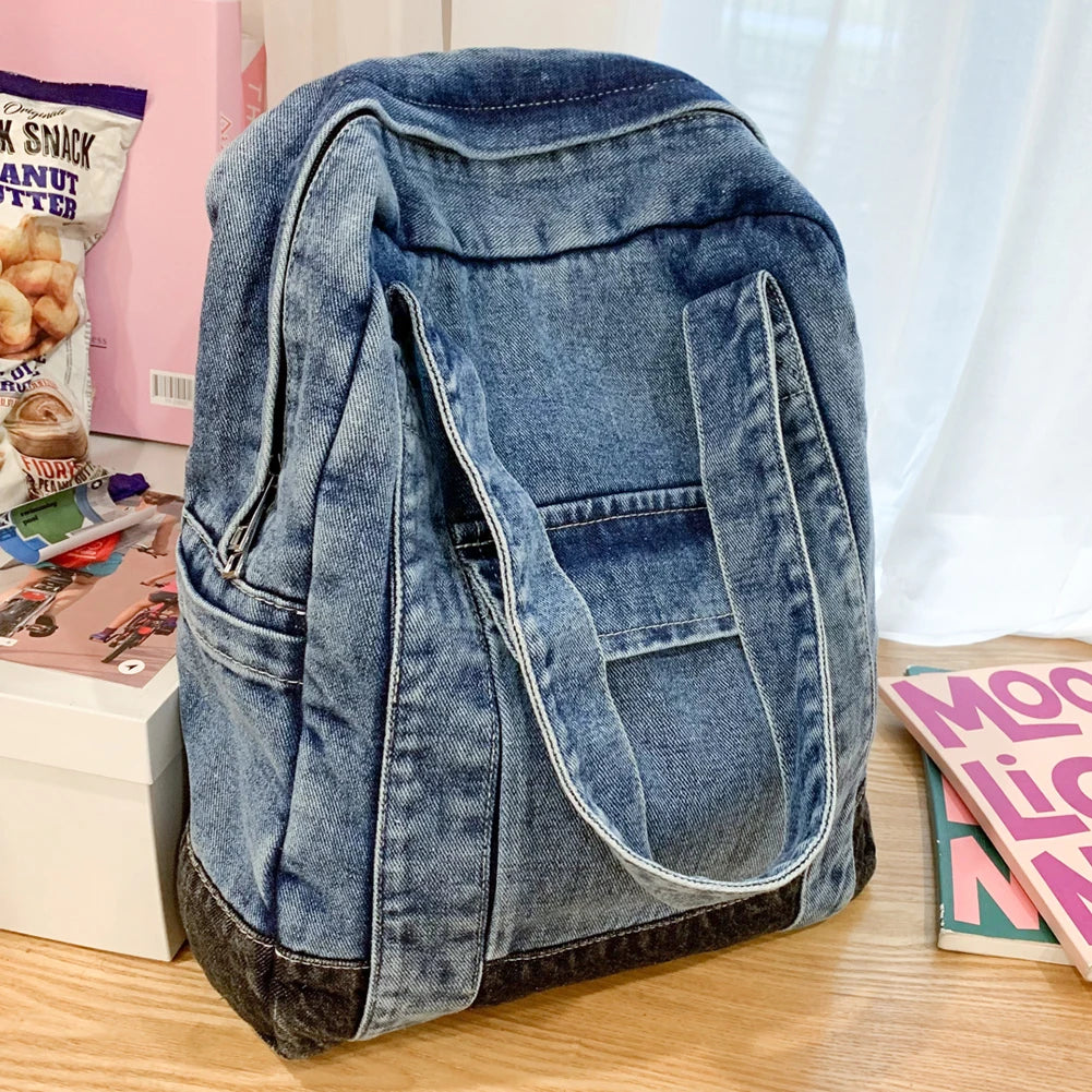Denim Backpack | Adjustable Strap Women Schoolbag Casual Jeans Bag