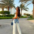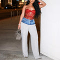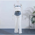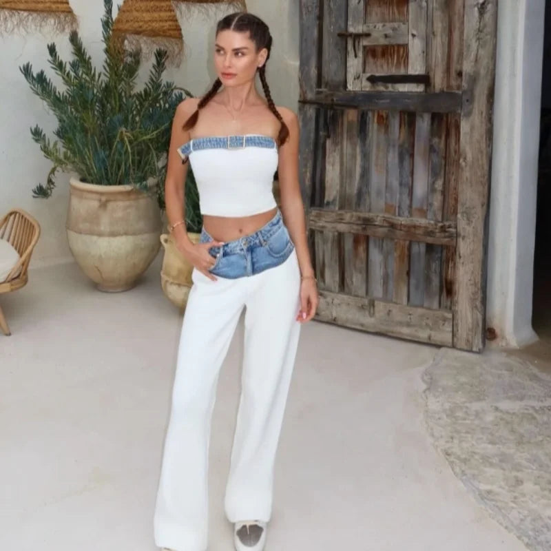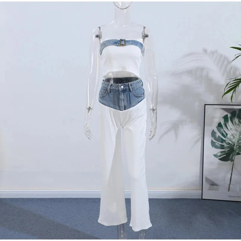 Casual Denim Pants For Girls | Knitted Sleeveless Tube Belt Vests Loose Straight Trouser 2025 Summer Street Suit