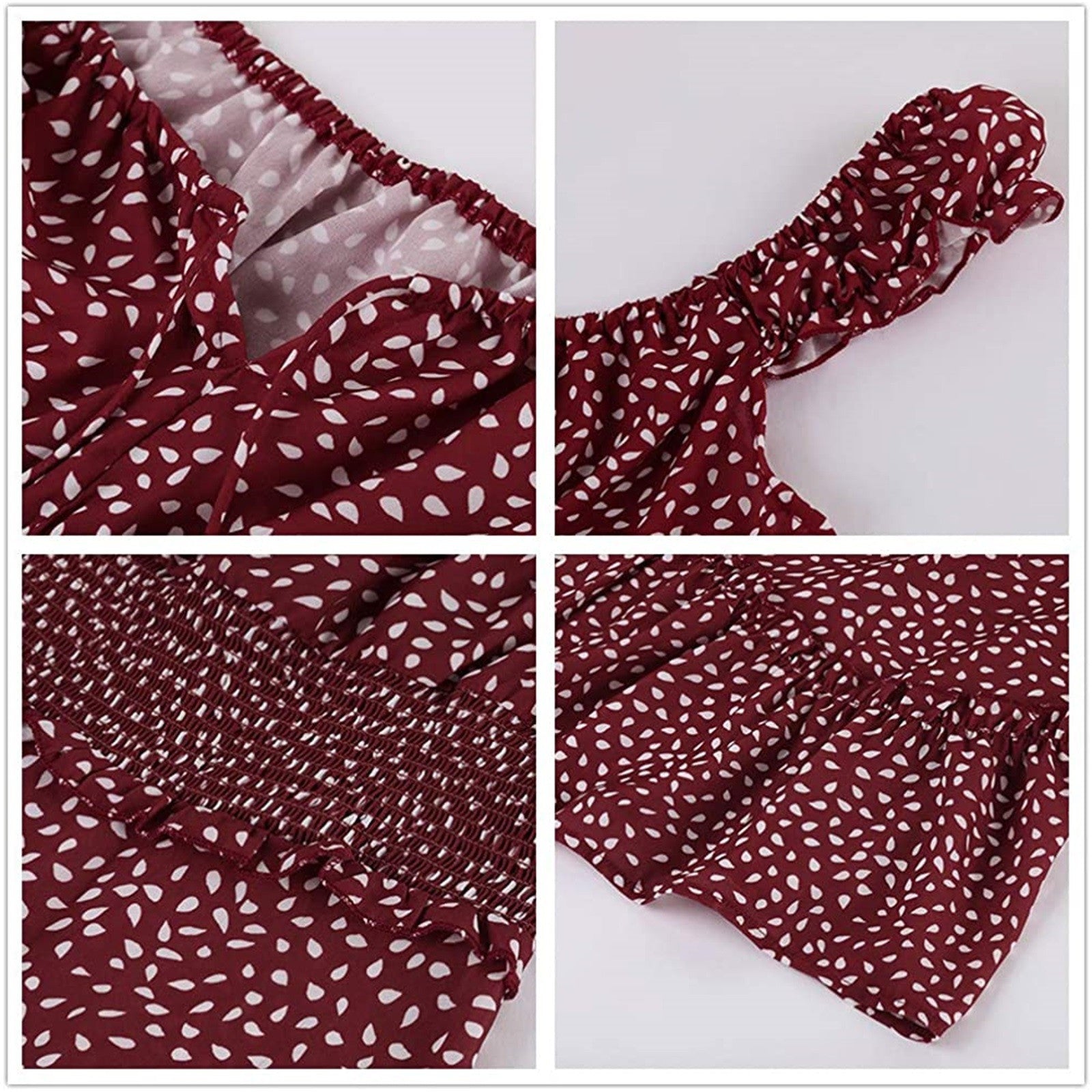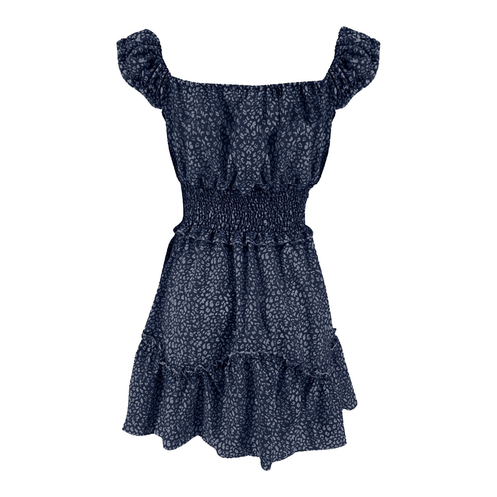 Woman Dress: PWomen's Sexy Summer Pleated Sleeve Neckline Print Dress Mini Dress Sundress